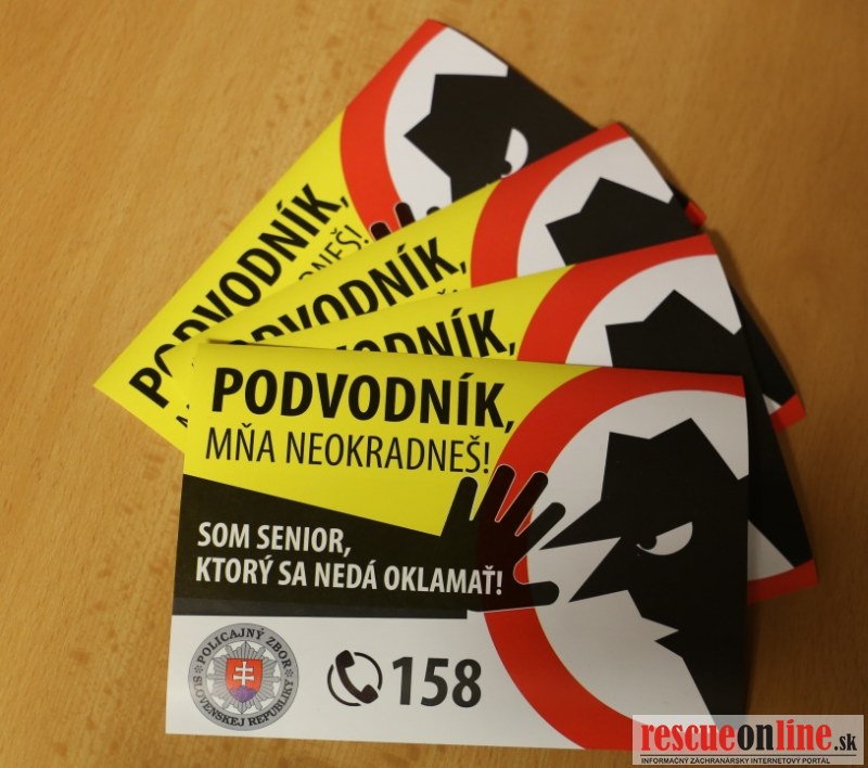 Práve z toho dôvodu sa Policajný zbor rozhodol priniesť preventívnu kampaň „SOM SENIOR, KTORÝ SA NEDÁ OKLAMAŤ!“. Policajní preventisti po celom Slovensku budú seniorom distribuovať nálepky s týmto heslom a s podtitulom „PODVODNÍK, MŇA NEOKRADNEŠ!“. Policajti budú seniorom odporúčať, aby si tieto nálepky nalepili na vchodové dvere, na bráničky rodinných domov, prípadne do spoločných priestorov na chodbe alebo priamo na miesto, kde majú umiestnenú pevnú linku alebo kde si pokladajú mobilný telefón.