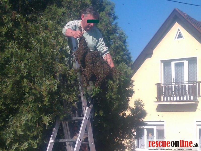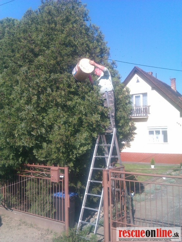Leopoldov | KR HaZZ Trnava | MM | Na ohlasovňu požiarov hasičskej stanice v Hlohovci bol v utorok 10. mája 2011 o 15:40 hod. nahlásený roj včiel v Leopoldove na železničnej stanici v priestore autobusovej zastávky. Na miesto udalosti bola ihneď vyslaná jednotka HaZZ s technikou. Po príchode na miesto udalosti bolo prieskumom zistené, že roj včiel sa nachádza v korune stromu v priestore autobusovej zastávky a na základe tejto skutočnosti veliteľ zásahu telefonicky privolal včelára z Hlohovca. Príslušníci vytýčili páskou nebezpečnú zónu okolo miesta udalosti. Privolaný včelár sa na miesto udalosti dostavil o 16:16 hod.. Príslušník HaZZ asistoval včelárovi pri odchyte včiel a bol zabezpečovaný priestor proti vstupu osôb z dôvodu bezpečnosti. Po odchyte včiel privolaným včelárom do jeho úľa sa jednotka o 17:54 hod. vrátila späť na základňu.