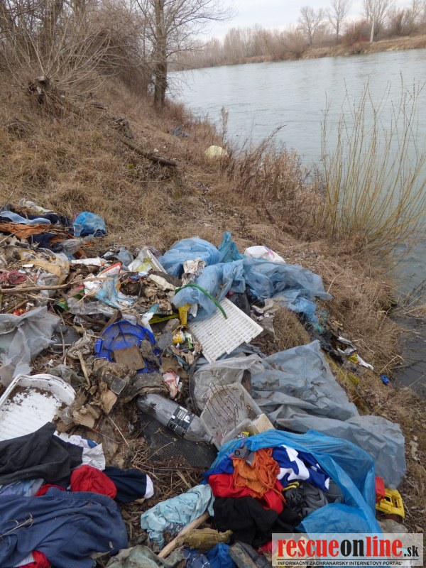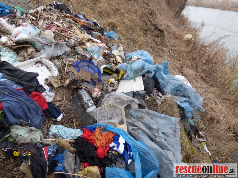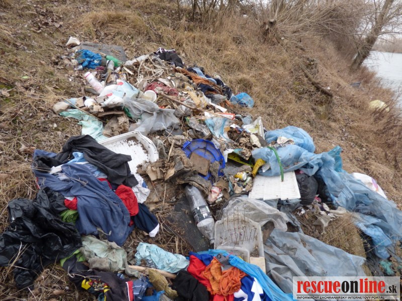 Vinohrady nad Váhom / Šurovce | V piatok nás na ďalšiu anomáliu v konaní slaboduchého jedinca vo vzťahu k prírode upouornil stály čitateľ z Vinohradov nad Váhom. Pri pravidelnej prechádzke popri Váhu na Šúrovskej strane Váhu, resp. jeho brehu zaregistroval nepovolenú skládku odpadu. Už na prvý pohľad odpad na breh vysypal niekto buď z prívesu alebo nákladného auta. Odpad zostal zachytený na brehu, no prvá väčšia voda ho zoberie po prúde. Ešte v piatok sme odpad odfotografovali zo strany Vinohradov nad Váhom a dnes krútko popoludní sme spolu s oznamovateľom na miesto do Šúroviec privolali políciu.