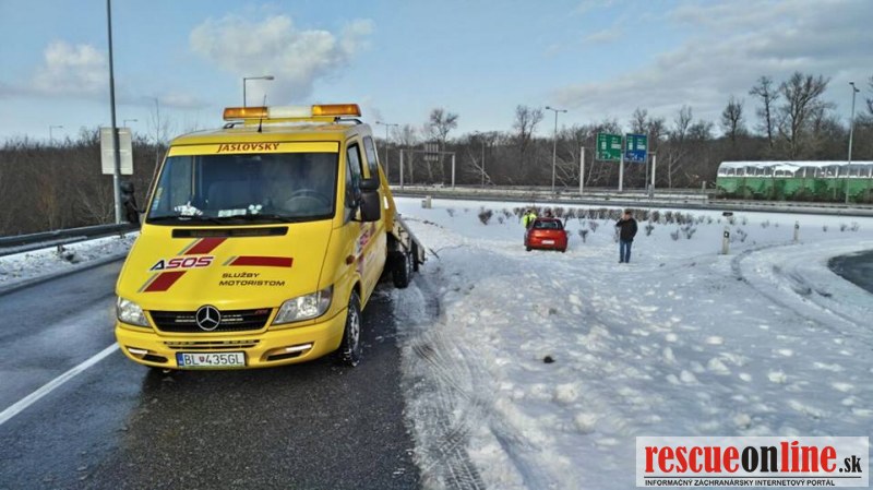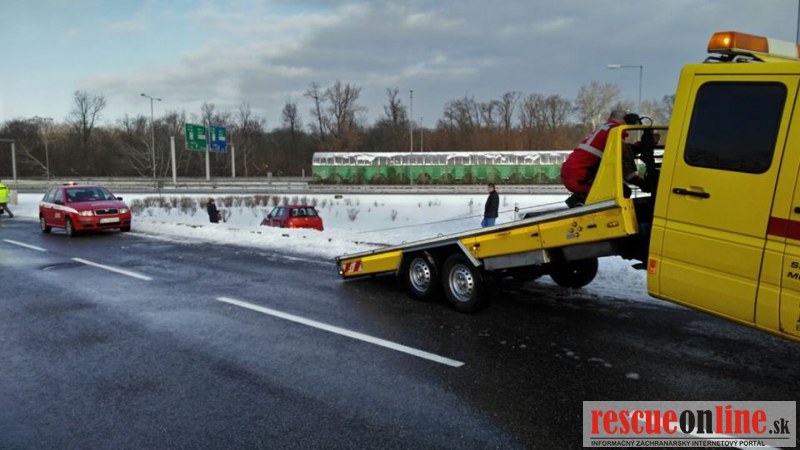 Odťahovka Jaslovský |MM| Pravdepodobne šmykľavý povrch vozovky spôsobil, že osobné vozidlo skončilo mimo vozovku. Stalo sa tak včera v dopoludňajších hodinách na Einsteinovej ulici v Bratislave pri výjazde na Rusovskú cestu. Pri dopravnej nehode boli prítomní príslušníci HaZZ a polícia, ktorá nehodu prešetrila.