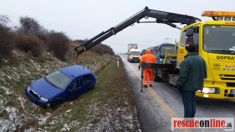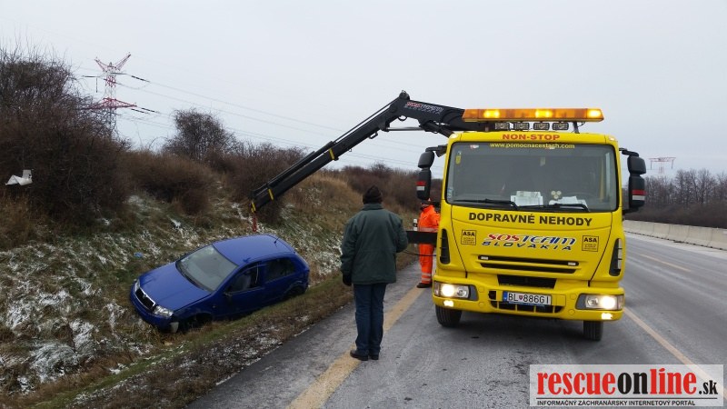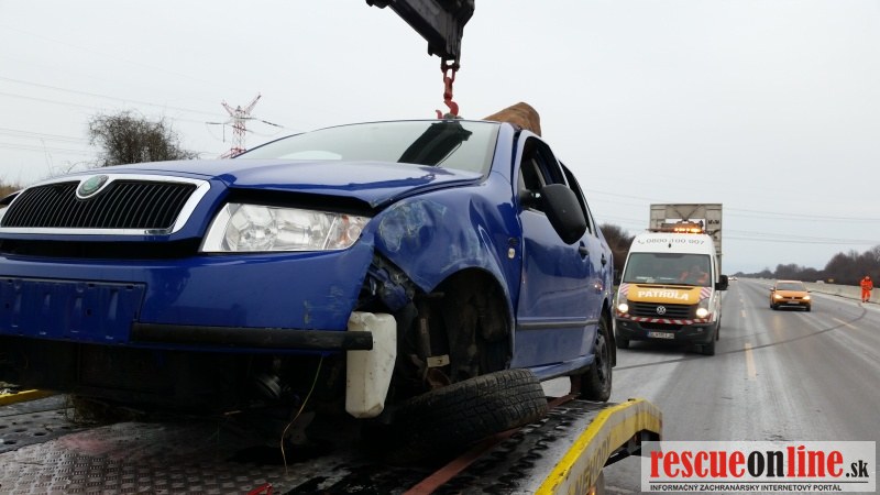 SOSTEAM SLOVAKIA |MM| Včera 3.1.2016 došlo k dopravnej nehode na D1 na 21.km v smere do Senca. Vodič modrej Škoda Fabia prešiel na pravú krajnicu, dostal šmyk, prešiel cez všetky pruhy, kde narazil do stredového zvodidla a odrazil sa do priekopy. Vodič vyviazol bez zranení.