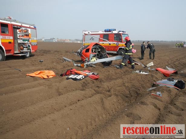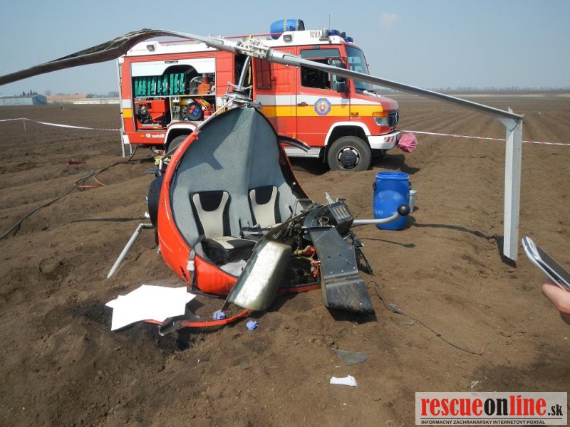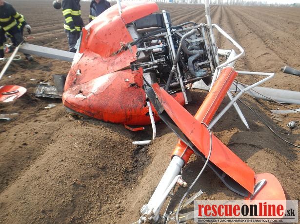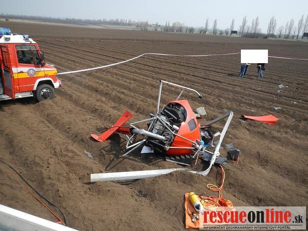 KR HaZZ Trnava |MM| Na ohlasovňu požiarov OR HAZZ v Trnave bol dňa 21.04.2013 o 10.45 hod. prostredníctvom KS IZS v Trnave ohlásený pád vrtuľníka v blízkosti letiska pri meste Trnava. Na miesto udalosti bola vyslaná hasičská technika AHZS MB Vario a AHZS MB Atego s 9 príslušníkmi. Po príjazde na miesto udalosti bolo prieskumom zistené, že sa jedná o pád dvojmiestneho ultraľahkého vrtuľníka s 1 ťažko zranenou osobou a 1 zakliesnenou osobou (exitus). Postupne sa na miesto udalosti dostavili: PZ SR, ZZS, riadiaci dôstojník KR HaZZ v Trnave a riaditeľ KR HaZZ v Trnave. Súčasne bol vrtuľník zabezpečený proti vzniku požiaru odpojením akumulátora a ďalšiemu úniku prevádzkových kvapalín sorbčnými rohožami. Po príjazde DHZ Pole s technikou T 815 - AV 15 a PV3S bol vrtuľník naložený a odvezený. Po spísaní potrebných údajov a vyhotovení fotodokumentácie sa jednotka HaZZ o 15.02 hod. vrátila na základňu bez zranenia príslušníkov a poškodenia has. techniky.