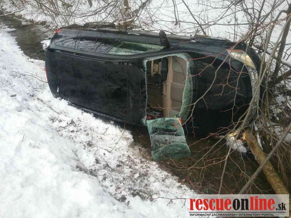 Po dopravnej nehode skončilo auto prevrátené v potoku