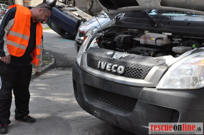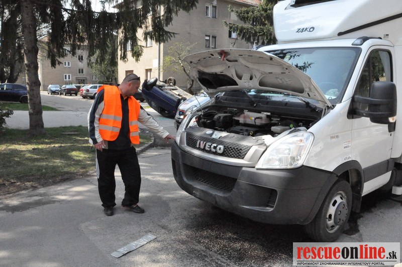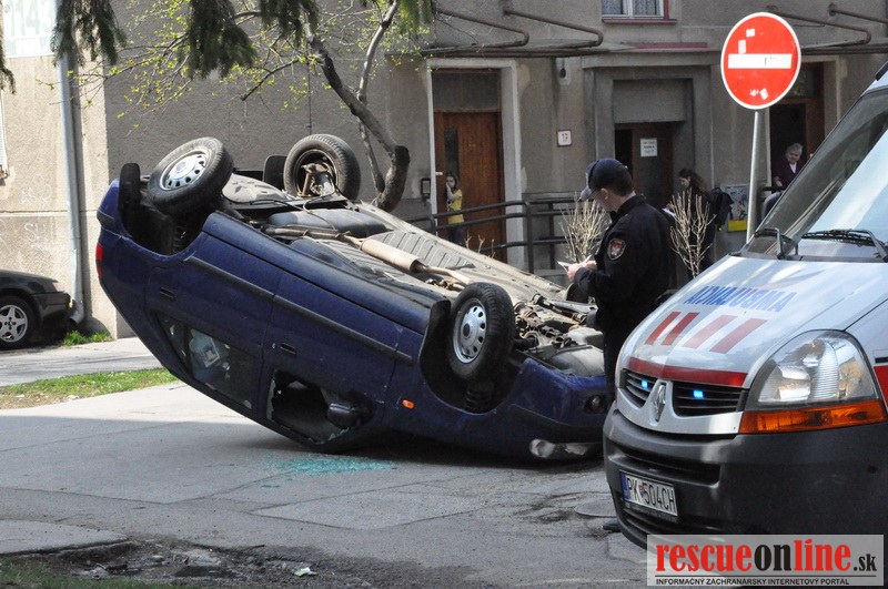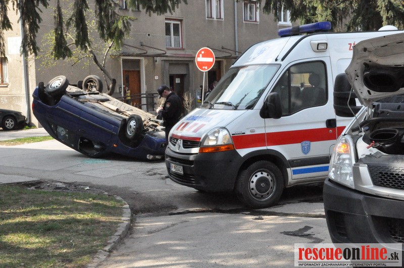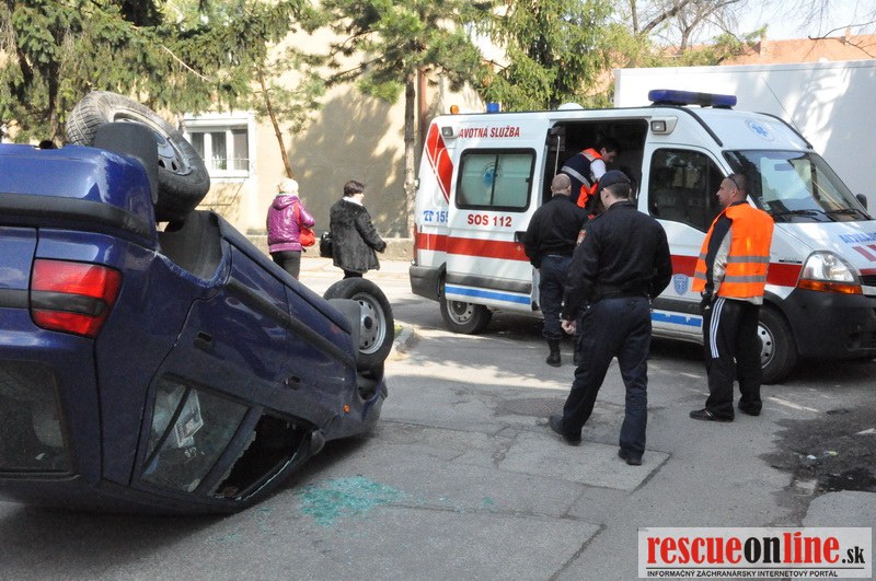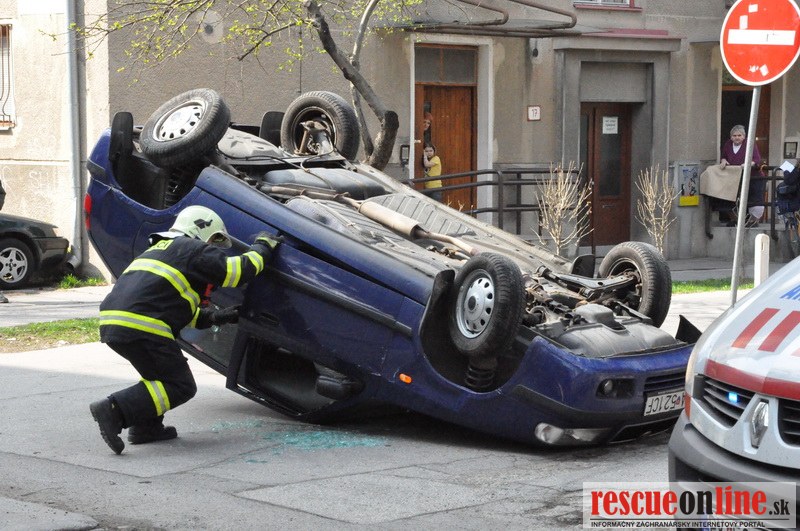 Sereď | Krátko po 12. hodine došlo pravdepodobne z dôvodu nedania prednosti v jazde k dopravnej nehode na ulici Spádovej pri starej lekárni. Jedno z vozidiel po náraze skončilo značne poškodené na streche. Zranenému vodičovi okamžite na mieste nehody poskytol pomoc MUDr. Tibor Plézel, ktorý má chirurgickú ambulanciu iba niekoľko metrov od miesta dopravnej nehody. Následne zraneného prevzala osádka RZP. Na miesto udalosti bola vyslaná aj hliadka Mestskej polície. Nevyhnutné úkony na zabránenie požiaru a likvidáciu vytečených prevádzkových kvapalín zabezpečila jednotka HaZZ zo Serede. Miesto dopravnej nehody momentálne dokumentuje policajt ODI Galanta.