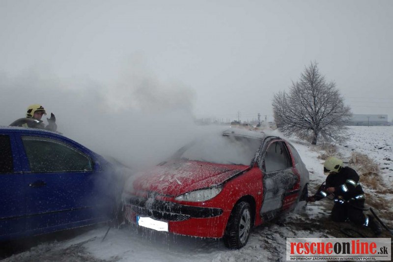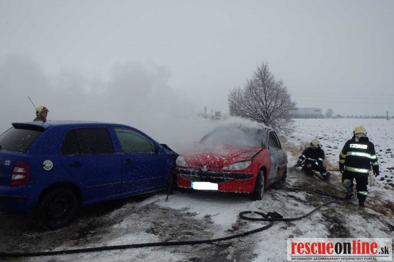 KR HaZZ Trnava |MM| Dnes (1. februára 2017) krátko pred 9.00 hod. bola nahlásená dopravná nehoda dvoch osobných motorových vozidiel s následným požiarom na št. ceste II/507. V čase príchodu hasičov na miesto udalosti bolo jedno vozidlo celé zachvátené požiarom a na druhom horela predná časť. Obaja vodiči sa nachádzali mimo vozidiel a boli odovzdaní do starostlivosti záchrannej zdravotnej služby. V dôsledku dopravnej nehody praskla palivová nádrž a hasiči museli na likvidáciu použiť penu. Následne boli na vozidlách vykonané protipožiarne opatrenia. Na mieste udalosti zasahovali hasiči z Galanty. Príčina vzniku požiaru bola dopravná nehoda.