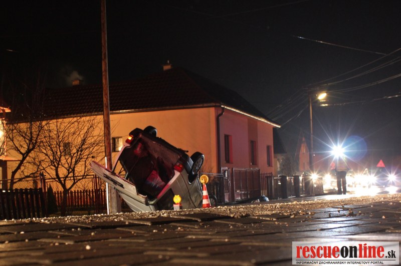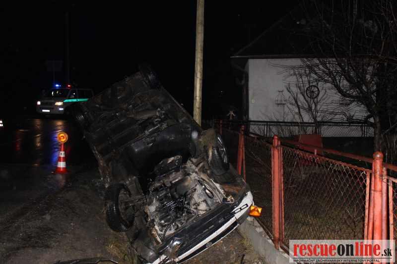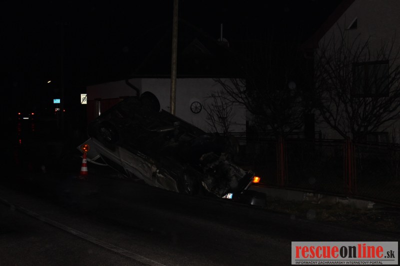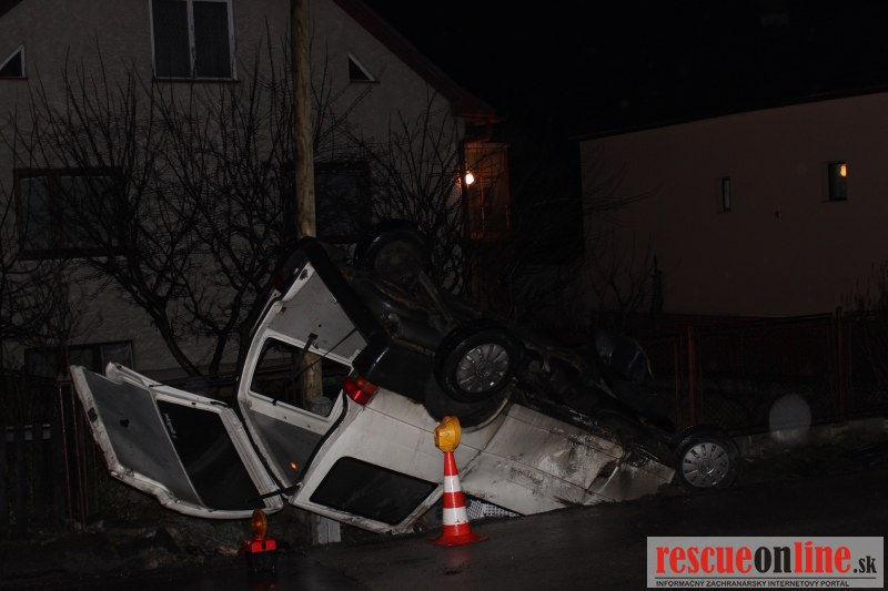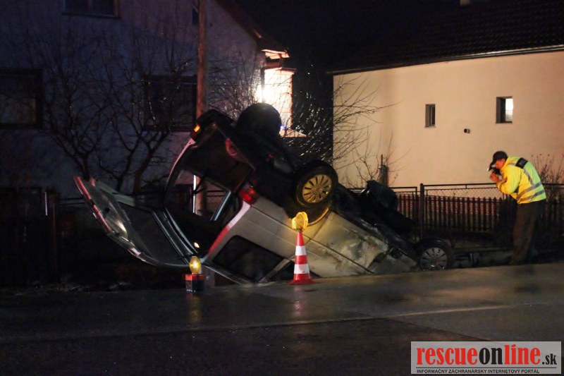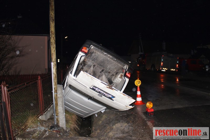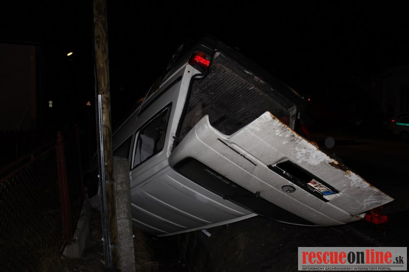 Po nehode skončila dodávka na streche v odvodňovacom kanáli.