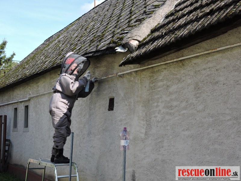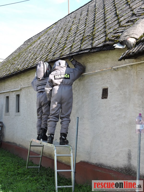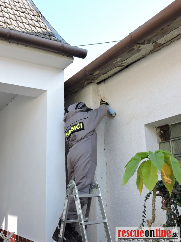 Pobedimskí hasiči pri odstraňovaní hniezda s bodavým hmyzom v rodinnom dome
