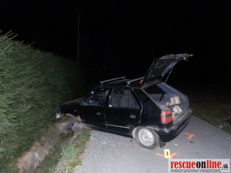 Podgurážený vodič skončil v priekope, dvaja spolujazdci sa ťažko zranili
