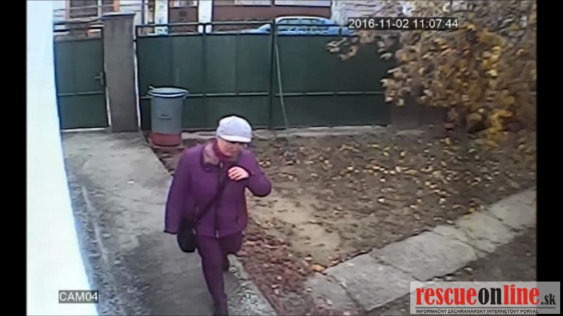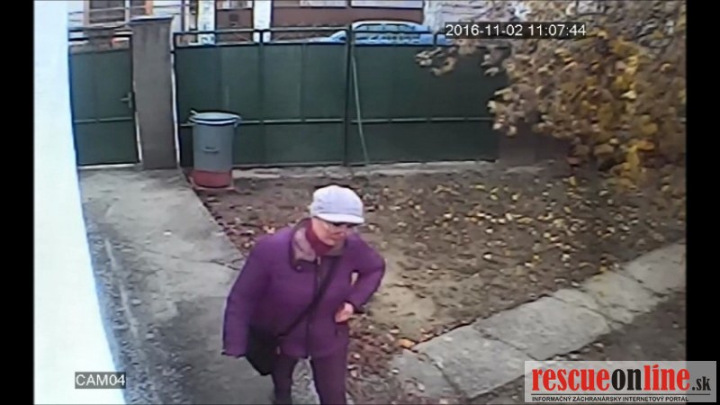 Podozrivú ženu zachytila priemyselná kamera. Farba jej oblečenia je však na kamere skreslená. Podľa výpovede poškodenej bola táto žena oblečená v čiernom ( na kamere sa farba oblečenia javí ako fialová).