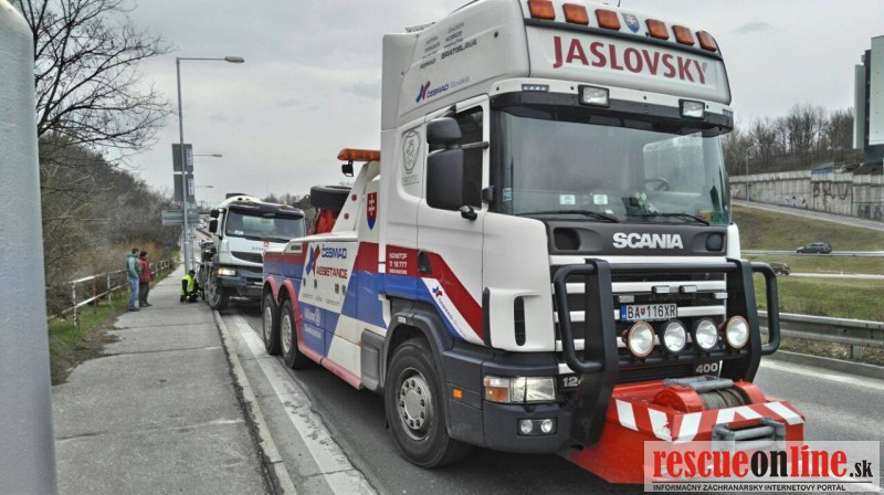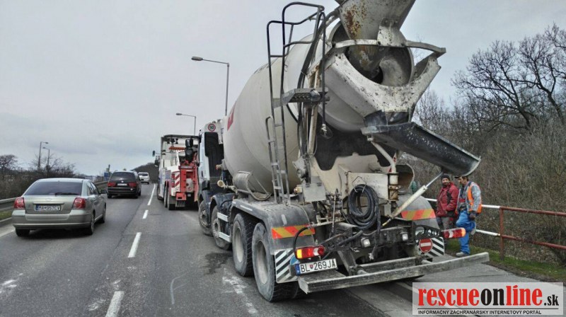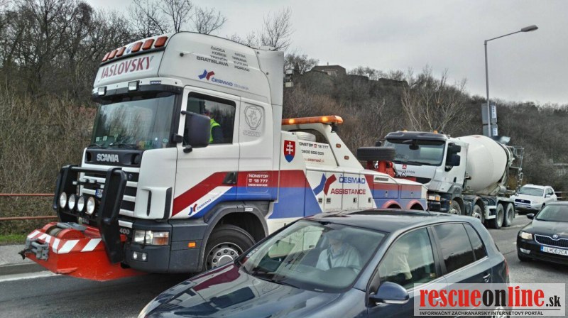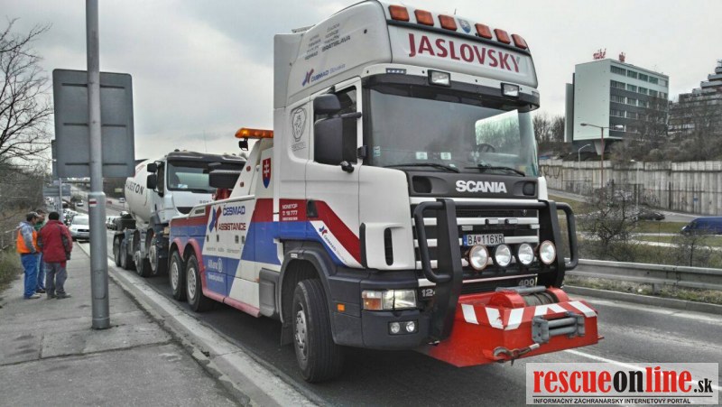 Odťahovka Jaslovský |MM| Bratislava | Dnes pred niekoľkými hodinami obmedzoval dopravu v Mlynskej Doline pri ZOO pokazený vymiešavať. Nakoľko bol plný betónu a premávka sa zhusťovala, situácia si vyžadovala čo najskôr ho odtiahnuť z vozovky.