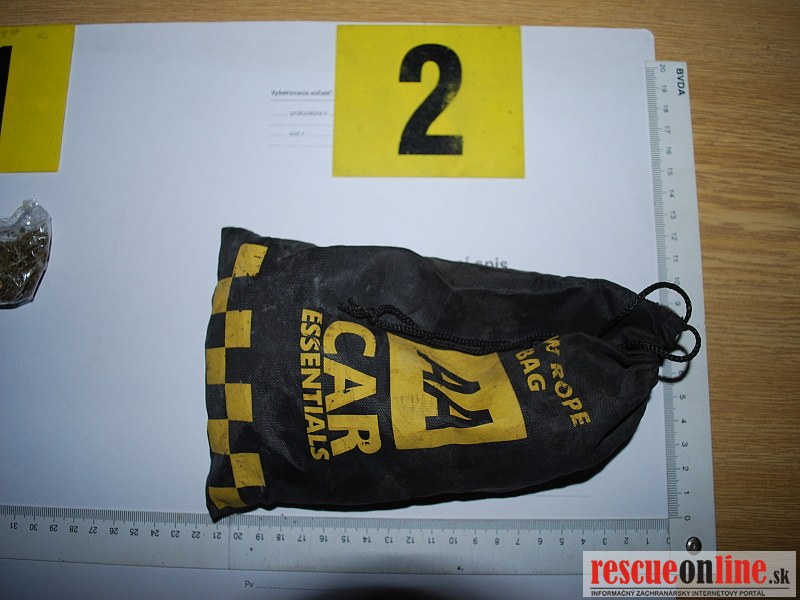 vrecúška s obsahom sušenej rastliny. Pri ohliadke motorového vozidla značky Dacia