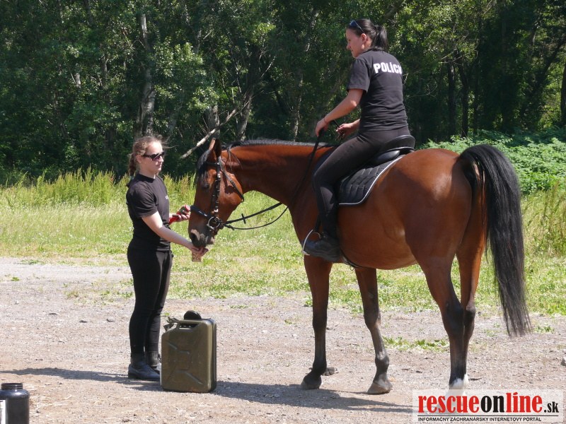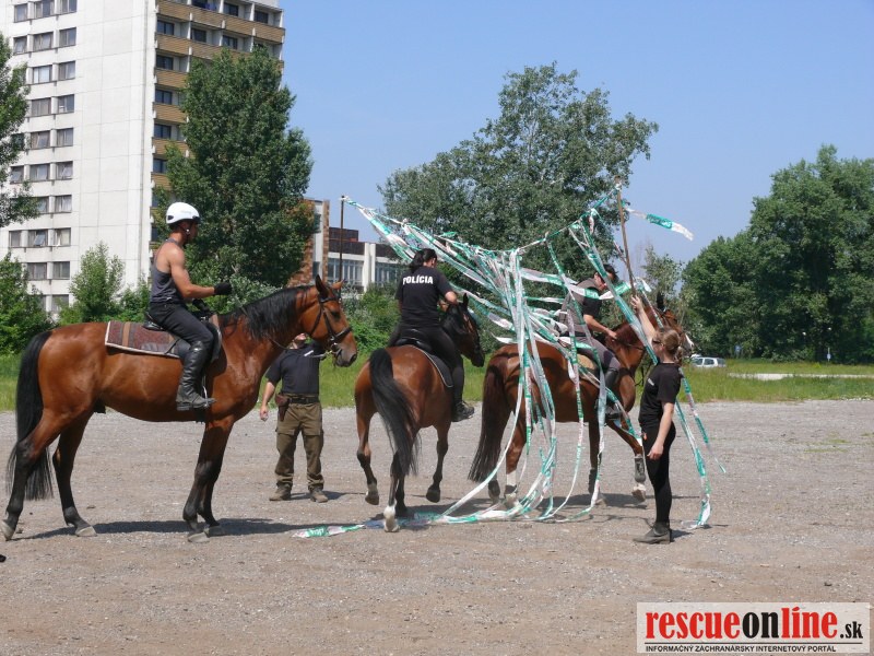 Na jednom z mnohých výcvikov policajných koní v Petržalke – Ovsišti sme sa zúčastnili aj s fotoaparátom. Policajti cvičili prípadný útok fanúšikov s palicami na kone, hluk, krik a streľbu z pištole. Neoddeliteľnou súčasťou výcviku bolo aj kladenie rôznych prekážok pod nohy, ale aj na hlavu koní. Nuž za túto odvahu dostávali koníky od cvičiteľov odmenu v podobe jabĺk a iných dobrôt. Takže športoví fanúšikovia na zápas si neberte palice a dymovnice, ale jablká a ovos, ak ich ponúknete dobrotou zrejme vás budú koníky poslúchať.