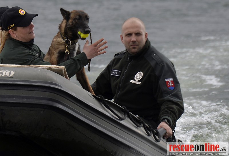 Od pondelka až do piatku (6.3. až 10.3.2017) budú cvičiť taktiku, aby sa ešte viac zdokonalili vo vyhľadávaní nie len na pevnine a v lesných porastoch, ale aj v stojatej a tečúcej vode. Včera (utorok, 7.3.) trénovali v stojatej vode v jazere pri Vojke nad Dunajom v dunajskostredskom okrese. Úlohou psa je vyhľadať a označiť pachovú konzervu, ktorá je ukrytá v hĺbke asi 60 centimetrov. Policajt je aj so svojím psom na člne a postupne sa presúvajú po celom jazere. Na mieste, kde je pachová konzerva ukrytá, pes zašteká. Tým dá psovodovi najavo, že tam niečo je a tomu miestu treba venovať väčšiu pozornosť (viď. video). Podobne dnes prebieha aj cvičenie na súši, pachová konzerva je schovaná v kroví a keď ju pes zacíti, začne na tom mieste hrabať, aby upozornil psovoda, že niečo našiel. Za odmenu dostane loptičku.