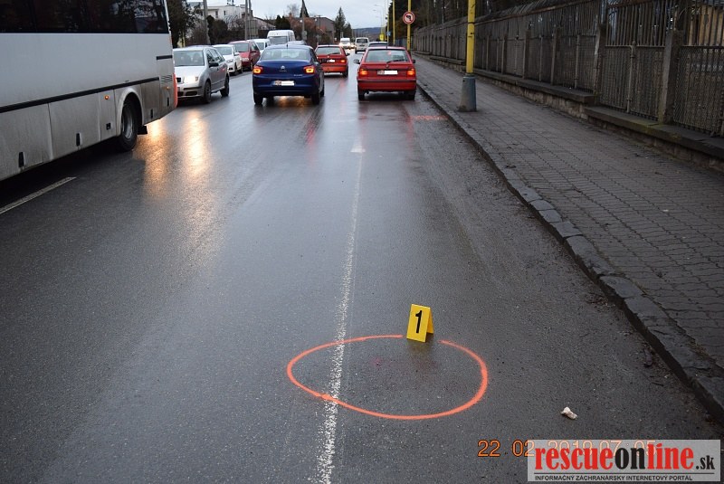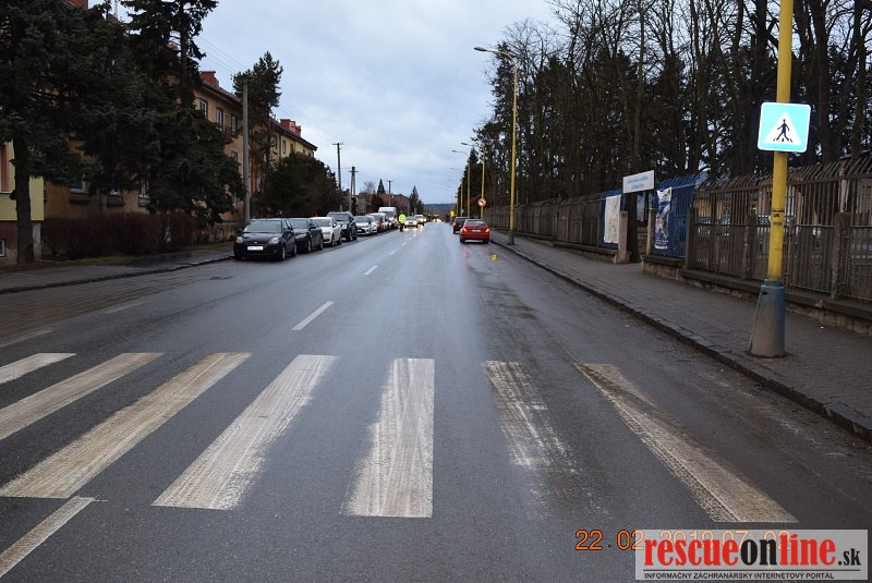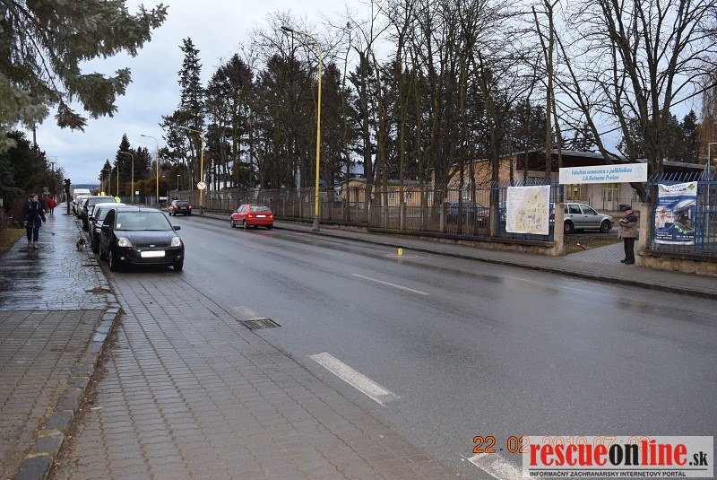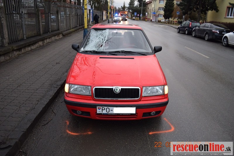 KRPZ Prešov |MM| Dnes / 22.02.2019 / pár minút po 6-tej hodine ráno na Ul. Šafárikovej v Prešove za zastávkou MHD pri FNsP v Prešove v smere na Ul. Dukliansku došlo k zrážke osobného motorového vozidla zn. Škoda Felícia / vodičom bol 75 ročný muž / a 55 ročnej chodkyne. Pri tejto zrážke chodkyňa utrpela bližšie nešpecifikované zranenie hlavy a bola prevezená do nemocnice.
