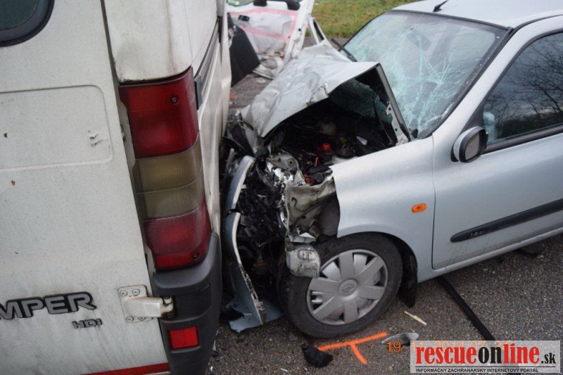 KRPZ Trnava |MM| Polícia pátra po vodičovi, ktorý po nehode ušiel. K dopravnej nehode došlo v stredu, 19. 11. 2014 o 06.15 h na ceste II/0624 medzi obcami Pusté Úľany a Veľký Grob. Podľa účastníkov nehody malo kolíziu na ceste spôsobiť staršie auto BMW, s galantským evidenčnými číslami. Vodič na tmavom BMW mal prechádzať pre ním idúce autá a svojou jazdou v protismere ohrozil oprotiidúceho vodiča na aute Citroen Jumper. Následkom toho dostal vodič šmyk a v protismere došlo k zrážke s autom Renault Thalia. Pri nehode došlo k ľahkému zraneniu oboch vodičov, a dvaja spolujazdci z Renaultu Thalia sa zranili ťažko. Polícia pátra po vodičovi, ktorý pravdepodobne zavinil dopravnú nehodu. Akékoľvek informácie k osobe a k vozidlu môžu občania poskytnúť polícii na čísle 158.