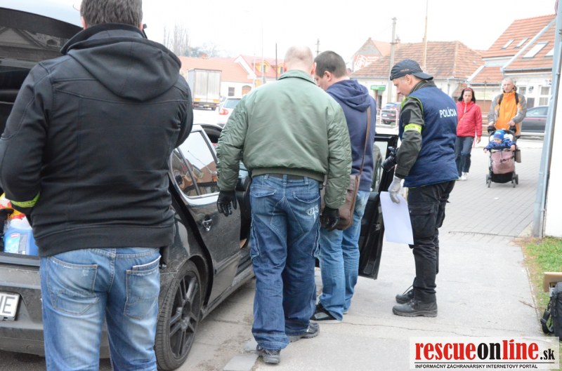 Sereď | V popoludňajších hodinách záujem okoloidúcich pútala policjná akcia na Kúpelnom námestí v Seredi. Policajti v civile priamo na kraji cesty robili prehliadku osobného motorového vozidla čiernej farby stojaceho na kraji cesty. Mladá slečna ktorá sa k autu hlásila, čakala opodial na vykonanie nevyhnutných úkonov ako policajtov, tak kriminalistického technika.