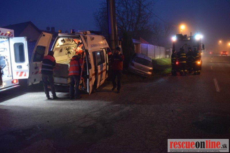KRPZ Trnava |MM| Polícia vyšetruje dopravnú nehodu, ktorá sa stala včera (28.12) o 15.40 h v obci Hrnčiarovce nad Parnou (okr. Trnava) v križovatke ulíc Cíferská a Vinohradnícka. Sanitka VW Transporter sa pohybovala so zapnutým svetelným výstražným znamením po ulici Cíferskej smerom na obec Cífer. Pri predbiehaní osobného auta Peugeot 307 došlo k zrážke medzi autami. V dôsledku toho boli autá odrazené mimo cestu do tehlového plotu rodinného domu a do betónového stĺpu elektrického vedenia. Pri nehode utrpeli vodič sanitky a jeho spolujazdec ľahké zranenia. Dychovou skúškou polícia požitie alkoholu u vodičov nezistila.