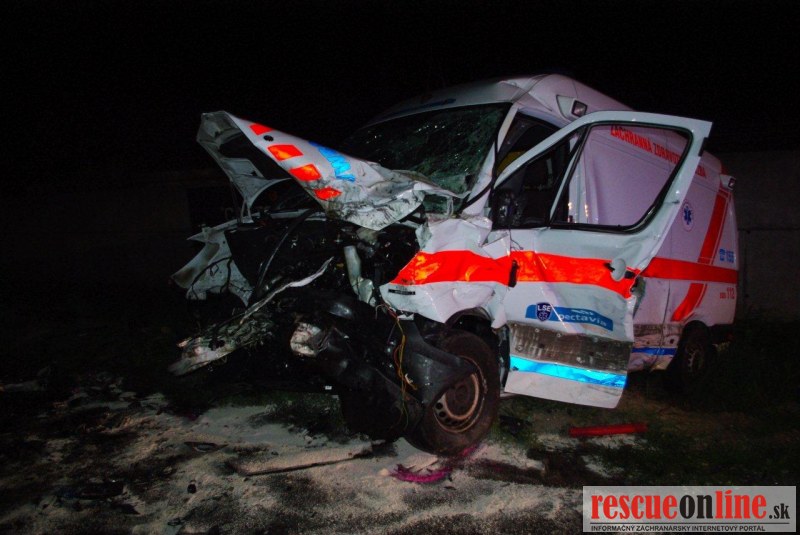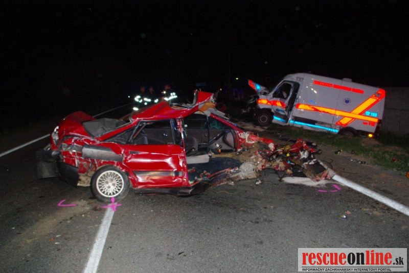 KRPZ Trnava |MM| Na ceste druhej triedy medzi Skalicou a Holíčom došlo včera (1.9.) asi o 21.30 h k dopravnej nehode medzi osobným autom Audi 80 a sanitkou RZP Sicar Rasic. Audi viedol 22 ročný muž z Chropova v smere od Skalice. Pravdepodobne pri predchádzaní iného auta prešiel vodič Audi do protismeru, kde došlo k zrážke so sanitkou. Vodič Audi utrpel ťažké zranenia, 37 ročný vodič sanitky z Malaciek a 39 ročný zdravotník z Gbelov sa zranili ľahko. Prepravovaný pacient z Holíča (59) po prevoze v nemocnici zomrel. U nebohého sa bude vykonávať pitva na zistenie príčiny jeho smrti. Dychové skúšky na alkohol boli u oboch vodičov negatívne. Presné príčiny a okolnosti dopravnej nehody polícia vyšetruje, bolo začaté trestné stíhanie pre usmrtenie a ublíženie na zdraví.