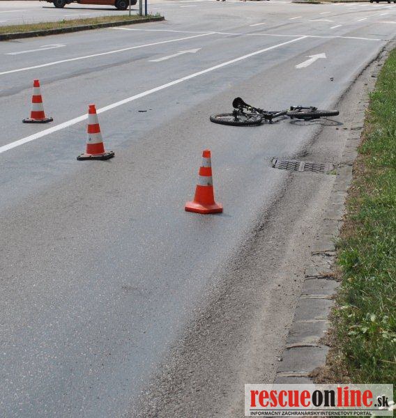 KRPZ Žilina |MM| V stredu 22. júla predpoludním (v čase okolo 11.34 hodine)došlo v Martine na ceste prvej triedy I/65 k dopravnej nehode. 61 ročný vodič (z Brezna) viedol nákladné motorové vozidlo Tatra 815 v smere od centra mesta Martin na Turčianske Teplice po ulici Jesenského. Z doposiaľ presne nezistených príčin s vozidlom zachytil 54 ročného cyklistu (z okresu Martin), ktorý viedol bicykel v rovnakom smere jazdy. Pri dopravnej nehode utrpel cyklista ťažké zranenia. U vodiča motorového vozidla alkohol vykonanou dychovou skúškou zistený nebol. U cyklistu bol nariadený odber krvi. Hmotná škoda bola predbežne vyčíslená na 500.-€.