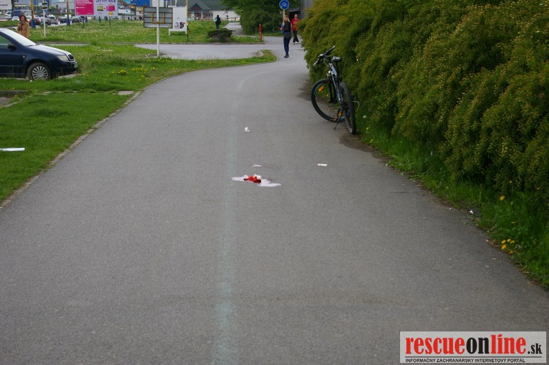 Chodkyňa išla po cyklistickom chodníku smerom na Exnárovú ulicu. Oproti išiel cyklista, ktorý pri obchádzaní chodkyne zachytil pravou stranou riadidiel jej rukáv pravej ruky, následkom čoho spadol a zranil si hlavu. Polícia v danej veci vedie trestné stíhanie pre prečin ublíženia na zdraví.