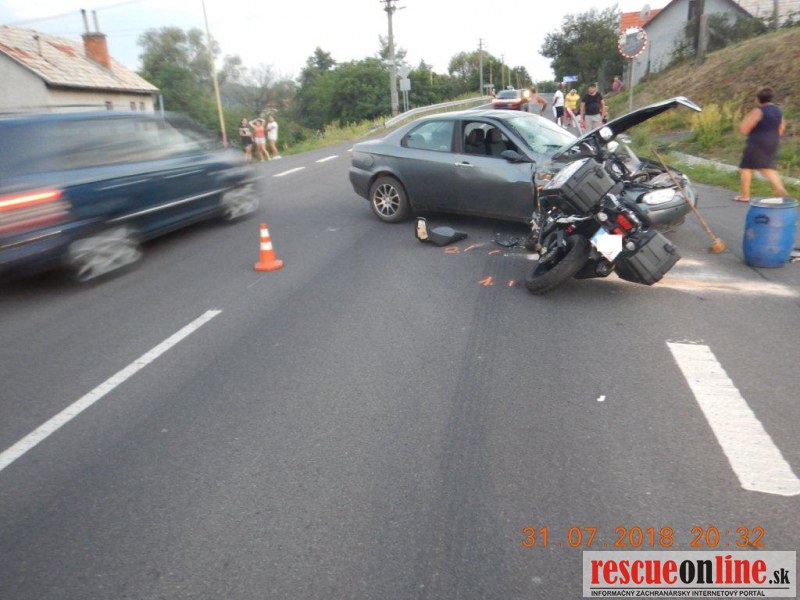 KRPZ Banská Bystrica |MM| K vážnej dopravnej nehode došlo v utorok (31.7.) krátko po 19.00 hod na ceste I/66 v obci Hontianske Tesáre (okr. Krupina). Podľa doterajšieho objasňovania, k nehode došlo pravdepodobne tak, že 21-ročný vodič osobného motorového vozidla Alfa Romeo viedol vozidlo v smere od obce Dvorníky, pričom pravdepodobne nedal prednosť v jazde motocyklu Suzuki DL 1000, ktorý jazdil v smere na Šahy. Po náraze bol z motocykla vymrštený vodič aj jeho spolujazdkyňa, pričom obidvaja dopadli na asfaltovú časť vozovky a utrpeli ťažké zranenia. 41-ročný vodič motocykla (občan Maďarska) utrpel ťažkú ujmu na zdraví, so zraneniami bol prevezený do levickej nemocnice. Jeho 39-ročná spolujazdkyňa (občianka Maďarska) bola s ťažkými zraneniami vo vážnom stave prevezená leteckou záchrannou službou do banskobystrickej nemocnice. Vodič osobného motorového vozidla zranenia neutrpel. Tomuto vodičovi bol na mieste zadržaný vodičský preukaz. Na mieste dopravnej nehody bol prítomný aj znalec z odboru cestnej dopravy. Alkohol u vodičov zistený nebol. Dopravná nehoda je v štádiu objasňovania. Vyšetrovanie prevzal odbor kriminálnej polície vo Zvolene.
