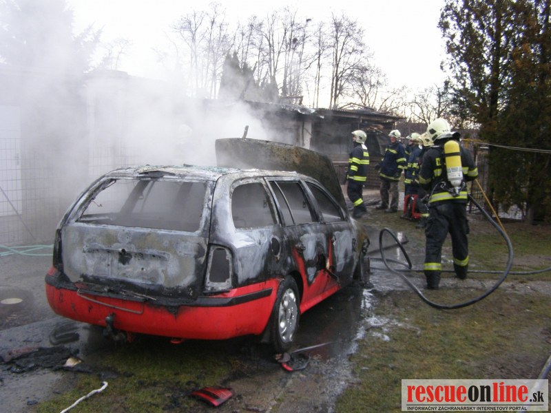 KR HaZZ Trnava |MM| Na operačné stredisko OR HaZZ v Dunajskej Strede bol v piatok 13. januára 2012 o 13:29 hod. nahlásený požiar osobného motorového vozidla v obci Kvetoslavovo. Operačný dôstojník vyslal jednotku z HS Šamorín s technikou MB Atego so štyrmi príslušníkmi HaZZ. Veliteľ zásahu si vyžiadal pomoc od OHZ Šamorín pretože bolo spresnené, že už horí aj vedľajšia budova pri aute. Po príjazde na miesto zásahu bolo zistené, že horí osobné motorové vozidlo Škoda Octavia Combi v celom rozsahu a predná časť maštale, z ktorej boli evakuované domáce zvieratá (tri kusy ošípaných, mačka a 15 sliepok). Príslušníci HaZZ za použitia dýchacích prístrojov požiar lokalizovali a zároveň likvidovali jedným vysokotlakým prúdom vody. Na miesto udalosti sa dostavil vyšetrovateľ OR HaZZ v Dunajskej Strede. Miesto požiariska bolo odovzdane majiteľovi vozidla. Po uhasení požiaru sa jednotka o 14:50 hod. vrátila na svoju základňu. Škoda, ktorá požiarom majiteľovi vznikla bola predbežne vyčíslená na 5 000.- €. Príčina vzniku požiaru je v štádiu vyšetrovania.
