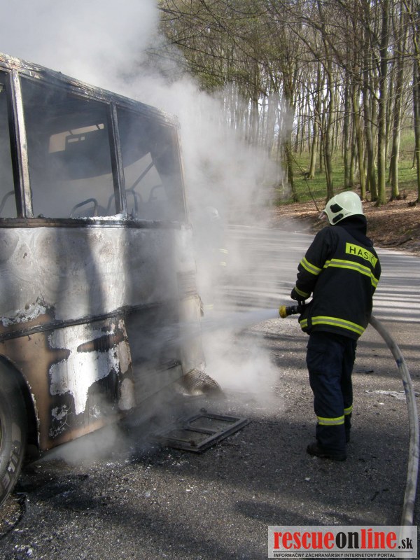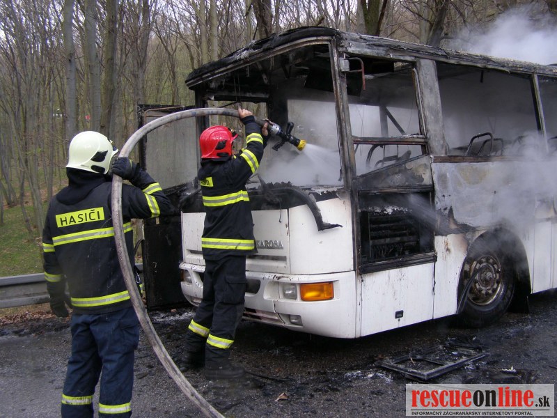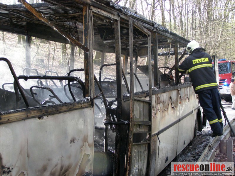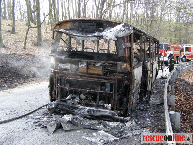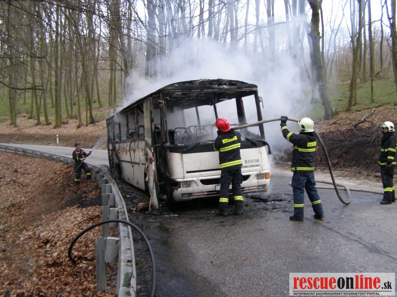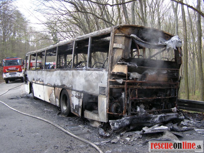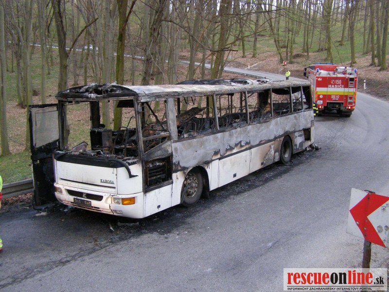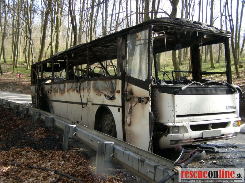 KR HaZZ Trnava |MM| Dňa 26. marca 2014 krátko pred 14.00 hod. bol ohlásený požiar autobusu v obci Banka (okres Piešťany) smerom na Havran (cesta č. II/499). Na mieste udalosti zasahovali hasiči z Piešťan. V čase príchodu hasičov na miesto udalosti bol celý autobus zachvátený požiarom, v priestoroch autobusu sa nenachádzala žiadna osoba (autobus neprevážal cestujúcich). Vodič autobusu bol mimo vozidla, snažil sa uhasiť požiar pomocou ručného hasiaceho prístroja a nevykazoval známky zranenia. Hasiči na likvidáciu požiaru nasadili jeden vysokotlakový prúd a jeden prúd „C“. Počas zásahu bola premávka obmedzená do jedného jazdného pruhu a riadila ju Polícia. V dôsledku požiaru vznikla majiteľovi vozidla priama materiálna škoda predbežne vyčíslená na 20.000,- €. Príčina vzniku požiaru je v štádiu vyšetrovania.