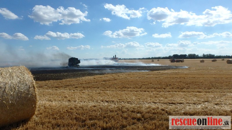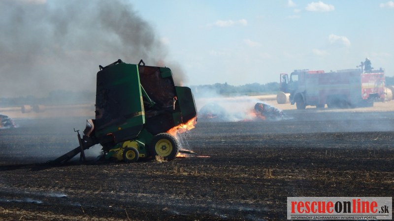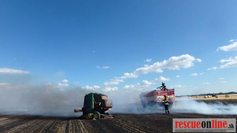 KR HaZZ Trnava |MM| Včera (03. júla 2017) krátko pred 16.30 hod. bol ohlásený požiar poľnohospodárskeho stroja – balíkovača slamy, strniska a balíkov slamy v katastri obce Čierny Brod. Na mieste udalosti zasahovali hasiči z Galanty a Serede a členovia DHZO Veľké Úľany, Mostová a Čierna Voda dvoma C prúdmi a dvoma B prúdmi. Príčinou vzniku požiaru bola prevádzkovo technická porucha. Následkom požiaru vznikla majiteľovi priama materiálna škoda predbežne vyčíslená na 25 000,- Eur.