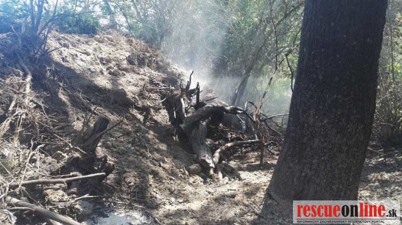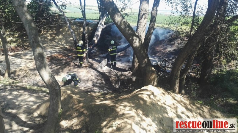 VZ HaZZ dal pokyn jednotke DHZO Pobedim s technikou CAS 30 T 815 vykonať hasiace práce pri požiari kríkov a haluzoviny ktorý sa nachádzal cca 50 m od miesta požiaru búdy, ktorú hasili príslušníci HaZZ. Členovia DHZO Pobedim pomocou vysokotlakého prúdu hasili miesto ktoré určil VZ . Na miesto udalosti sa dostavil ZPP. Požiar o rozlohe 3x5 m a požiar búdy o rozlohe 4x4 m. Po celkovej likvidácii požiaru, vyhotovení fotodokumentácie a spísaní potrebných údajov sa obe jednotky vrátili na svoje základne. Počas zásahu neprišlo k zraneniu zasahujúcich členov DHZO Pobedim ani k poškodeniu techniky. Po zlikvidovaní udalosti jednotka DHZO Pobedim pokračovala svoju cestu na základňu.