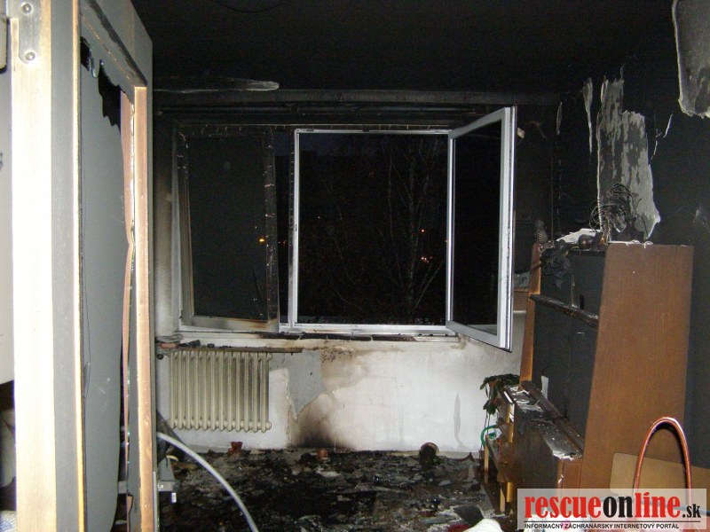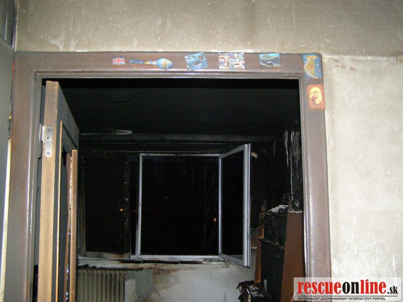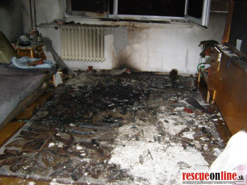 KR HaZZ Trnava |MM| Na OR HaZZ v Trnave bolo v nedeľu 27. novembra 2011 o 15:28 hod. nahlásené dymenie z bytu na ul. Vl. Clementisa v Trnave. Na miesto udalosti boli vyslaní štyria príslušníci HaZZ s technikou MB Atego. Po príchode na miesto udalosti bolo zistené, že sa horí byt na prvom poschodí. Nájomníčka sa v byte nenachádzala. Veliteľ zásahu si vyžiadal ďalšiu techniku Iveco Trakker a troch príslušníkov z dôvodu zložitosti objektu. Na lokalizáciu a likvidáciu bol použitý nástenný hydrant. Vstupné dvere bytu boli násilne otvorené s poškodením zámku za prítomnosti polície. Požiarom bola zachvátená jedna izba. Cely byt bol silne zadymený a prekontrolovaný termokamerou. Zhorený nábytok bol vyhodený z okna, kde bol dohasený vysokotlakým prúdom z Iveca Trakker. Priestor chodby a bytu bol odvetraný pomocou pretlakového ventilátora. Zásah bol vykonaný v dýchacích prístrojoch. Na miesto požiaru sa dostavil správca bytu, ktorému bol byt odovzdaný. Jednotka sa o 17:10 hod po ukončení zásahu vrátila na základňu. Škoda, ktorá požiarom vznikla, bola vyčíslená na 4 000.- €. Príčinou vzniku požiaru bola manipulácia s otvoreným ohňom.
