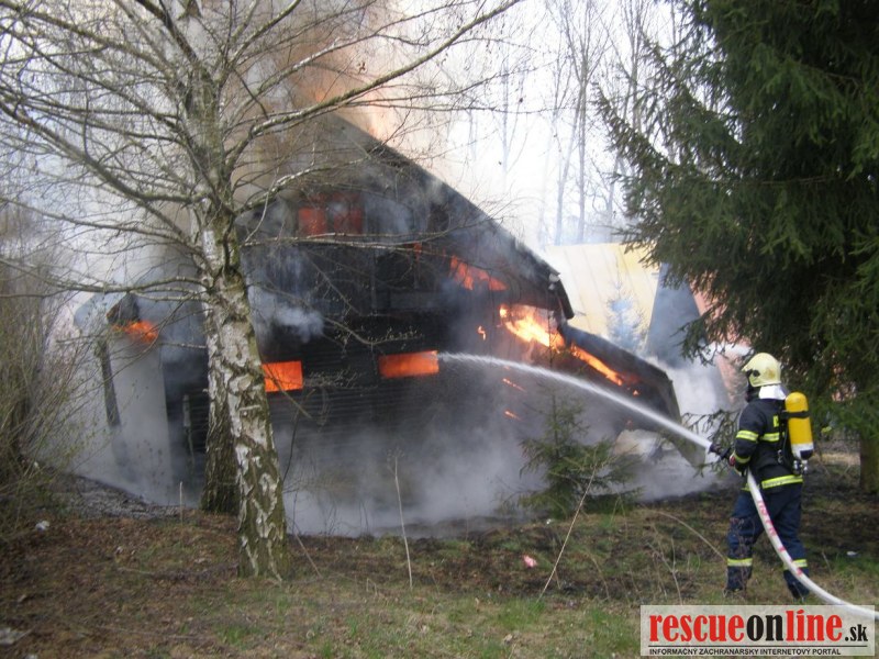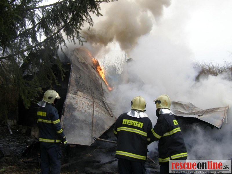 Vrbové | KR HaZZ Trnava | Na operačné stredisko OR HaZZ v Piešťanoch bol v stredu 6. apríla 2011 o 09:10 hod. prostredníctvom linky IZS Trnava nahlásený požiar chaty v k. ú. mesta Vrbové. Na zásah boli vyslaní štyria príslušníci HaZZ s technikou AHZS MB Atego a traja príslušníci s technikou CAS 32 T 815. Počas jazdy k požiaru bol viditeľný stĺp splodín horenia už z obce Trebatice. Po príjazde na miesto udalosti bolo zistené, že horí chata, ktorá je celá zachvátená požiarom. Na zásah boli nasadené dva „C“ prúdy a jeden vysokotlaký prúd z vozidla MB Atego. Pri nasadení síl a prostriedkov prišlo k zrúteniu strešnej konštrukcie objektu. Príslušníci HaZZ sa vystrojili dýchacími prístrojmi a zahájili likvidovanie požiaru. K miestu zásahu bola vyžiadaná jednotka OHZ Vrbové, ktorá sa na miesto udalosti dostavila v počte štyroch členov s technikou CAS 25 S 706. Jednotka OHZ vykonávala dopĺňanie MB Atega hasiacou látkou a pomocné práce. Príslušníci HaZZ po lokalizácii požiaru rozoberali konštrukciu pomocou trhacích hákov. Po likvidácii požiaru o 12:09 hod. príslušníci HaZZ prekontrolovali celé požiarisko a prekontrolovali či sa v objekte niekto nenachádzal a zásah ukončili a o 12:36 hod. sa vrátili na základňu.