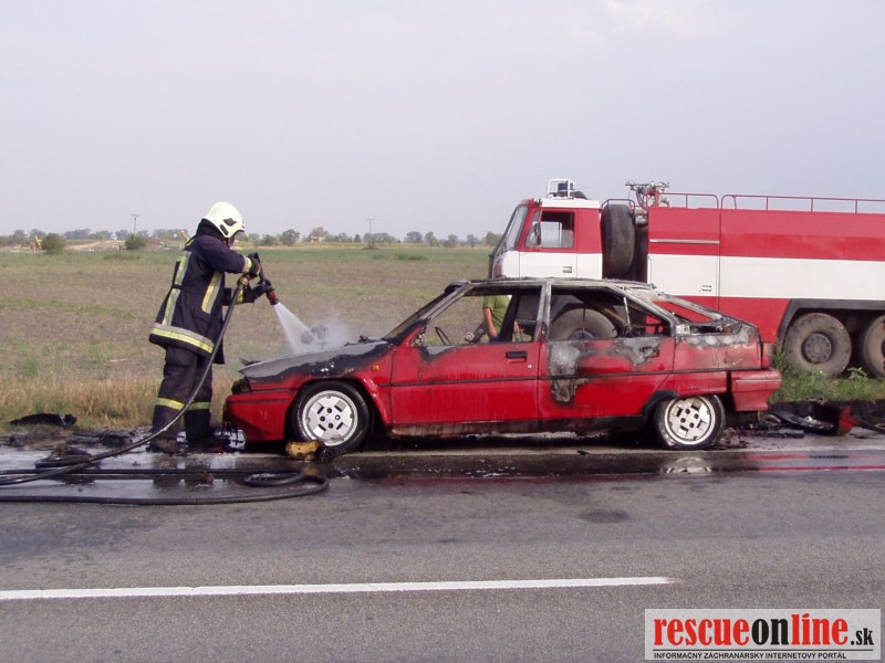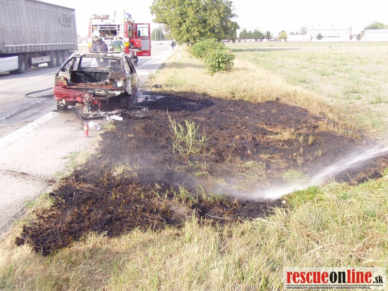 KR HaZZ Trnava |MM| Na ohlasovňu požiarov OR HaZZ v Dunajskej Strede bol dňa 12. Septembra 2012 o 16:03 hod. prostredníctvom Koordinačného strediska IZS v Trnave nahlásený požiar osobného motorového vozidla na ceste I. tr. č. 63 pri Dolnom Štále okres Dunajská Streda. Na miesto udalosti boli vyslaní 2 príslušníci z hasičskej stanice Veľký Meder s technikou AHZS MB Vario. Po príjazde na miesto udalosti bolo prieskumom zistene, že na ceste horí osobne motorové vozidlo zn. Citroen BX 19 a suchý porast pri vozidle. Požiarom boli ohrozene aj okolité stromy. Veliteľ zásahu nariadil nasadiť na likvidáciu požiaru 1x útočný vysokotlaky prúd za použitia ADP. Počas zásahu sa na miesto požiariska dostavili členovia OHZ Dolný Štál s technikou CAS 32 T 815, ktorí pomáhali pri likvidácii požiaru suchého porastu v rozlohe 10x4m vedľa horiaceho auta s 1x C prúdom. Po zlikvidovaní požiaru bolo vozidlo naložené na odťahové vozidlo a komunikácia bola dočistená. Hasičská jednotka sa vrátila na svoju základňu. Požiarom vznikla majiteľovi škoda cca 200 €. Príčina vzniku požiaru je skrat elektro-inštalácie na motorovom vozidle.
