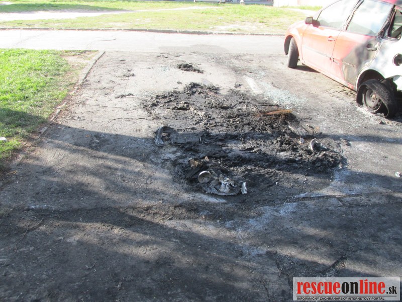 Požiar dvoch automobilov na Vinárskej ulici v Seredi