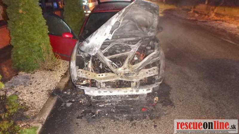 KR HaZZ Trnava |MM| Dnes (16. januára 2017) v nočných hodinách bol ohlásený požiar dvoch osobných motorových vozidiel vo Veľkom Mederi na Dunajskej ulici. Po príchode hasičov na miesto udalosti bolo jedno vozidlo celé v plameňoch nachádzajúce sa pred domom a druhé vozidlo bolo vo dvore v počiatočnej fáze horenia. Na likvidáciu požiaru bol použitý 2 x vysokotlaký prúd. Príčina vzniku požiaru je úmyselné zapálenie neznámou osobou. Následkom požiaru vznikla majiteľovi osobných motorových vozidiel priama materiálna škoda predbežne vyčíslená na 5 000,- €. Na mieste udalosti zasahovali hasiči z Veľkého Medera.