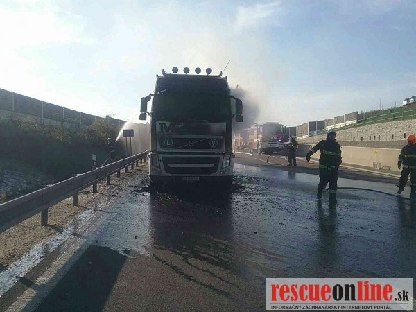 Prezídium HaZZ |MM| Dňa 21. októbra 2019 krátko pred 15.00 hod. bol ohlásený požiar nákladného vozidla na 45. kilometri rýchlostnej cesty R1 v smere na Banskú Bystricu v katastrálnom území mesta Nitra. Na mieste udalosti zasahovali príslušníci Okresného riaditeľstva Hasičského a záchranného zboru v Nitre, ktorí požiar zlikvidovali dvomi C a dvomi vysokotlakovými prúdmi. Pri zásahu boli použité autonómne dýchacie prístroje. Následkom požiaru vznikla majiteľovi priama materiálna škoda predbežne vyčíslená na sumu 80 000 €. Príčinou vzniku požiaru bola prevádzkovo-technická porucha na vozidle.