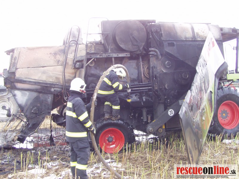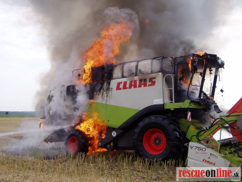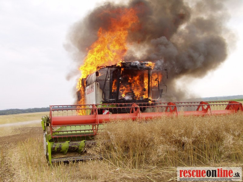 KR HaZZ Trnava |MM| Na operačné stredisko Okresného riaditeľstva Hasičského a záchranného zboru v Senici bol dňa 18.07.2013 o 16:48 hod. predsedom poľnohospodárskeho družstva Štefanov nahlásený požiar kombajnu na poli v časti Na lúkach v katastrálnom území obce Štefanov. Išlo o kombajn značky Claas Lexion 560, rok výroby 2006. Na miesto udalosti bola vyslaná štvorčlenná jednotka z hasičskej stanice v Senici s technikou CAS30 Iveco Trakker a Nissan Navara. Po príjazde na miesto určenia bolo prieskumom zistené, že sa jedná o požiar kombajnu pri zbere úrody. Na mieste udalosti boli zamestnanci poľnohospodárskeho družstva Štefanov, ktorí sa snažili požiar uhasiť svojpomocne pomocou hasiacich prístrojov a traktorom oborali miesto požiaru, aby sa požiar nerozšíril na obilie na koreni. Kombajn bol takmer celý v plameňoch a v stroji sa nenachádzala žiadna osoba. Na zásah boli použité 2 „C“ prúdy a jeden vysokotlakový prúd so strednou penou. Jedným prúdom bola ochladzovaná nádrž a žacia lišta, ktorá nebola zasiahnutá požiarom. Na miesto bol povolaný riadiaci dôstojník Okresného riaditeľstva Hasičského a záchranného zboru v Senici, ktorý vykonal zisťovanie príčiny vzniku požiaru. Po zistení potrebných údajov bolo požiarisko odovzdané pracovníkom poľnohospodárskeho družstva Štefanov a jednotka sa vrátila na základňu v čase 18:50 hod. Následkom požiaru vznikla majiteľovi poľnohospodárskeho stroja priama materiálna škoda predbežne vyčíslená na 60.000,- €. Zasahujúci príslušníci Hasičského a záchranného zboru zásahom uchránili majetok predbežne vyčíslený