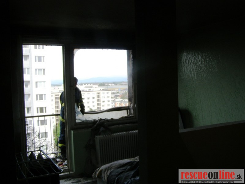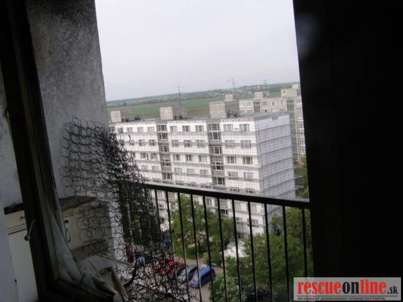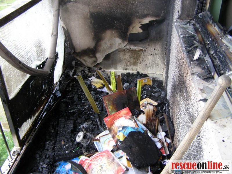 KR HaZZ Trnava | MM | Na operačné stredisko OR HaZZ Trnava bol v pondelok 16. mája 2011 o 08:07 hod. nahlásený požiar na balkóne na 10. poschodí obytného bloku na Golianovej ul. v Trnave. Na miesto bolo vyslaných osem príslušníkov HaZZ s technikou MB Atego, Automobilovou plošinou 44 Bronto a Nissan Navara. Po príchode na miesto určenia bolo zistené, že časti nábytku, matrace a papier, ktoré sa nachádzali na balkóne boli celé zasiahnuté požiarom. Sklenená výplň okna bola vypadnutá a balkónové dvere mali sklenú výplň popraskanú vplyvom požiaru. Príslušníci jednotky požiar zlikvidovali o 08:43 hod. pomocou dvoch kusov prenosných práškových hasiacich prístrojov a „C“ prúdu z vnútorného požiarneho hydrantu. Hasebné prace boli vykonávané z balkóna susedného bytu a pomocou výškovej techniky AP 44 Bronto. Po sprístupnení bytu, ktorému balkón patril, bolo vykonané odvetranie pomocou pretlakového ventilátora a bola vykonaná kontrola bytu termokamerou. Ďalej bola vykonaná kontrola susedných bytov nad a pod miestom požiaru. Škoda, ktorá požiarom vznikla, bola vyčíslená na 3 000.- €. Príčinou vzniku požiaru bola nedbalosť a neopatrnosť, odhodený ohorok cigarety na uvedený balkón.