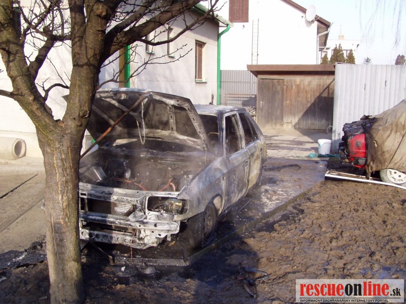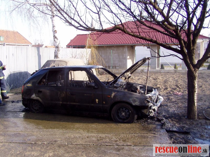 KR HaZZ Trnava |MM| Na Operačné stredisko KR HaZZ v Trnave bol vo štvrtok 2. februára 2012, o 09:06 hod. ohlásený požiar osobného motorového vozidla vo dvore rodinného domu v obci Košúty č. 186, okres Galanta. Na miesto udalosti bola z HS Galanta vyslaná jednotka HaZZ, štyria príslušníci s technikou AHZS Atego. Po príchode na miesto udalosti bolo zistené, že horia dve osobné motorové vozidlá Škoda Felícia a Škoda 105 vo dvore rodinného domu. Majiteľ sa snažil pred príchodom jednotky odtlačiť jedno motorové vozidlo do voľného priestranstva, aby nedošlo k rozšíreniu požiaru na priľahlú drevenú budovu. Pri tejto činnosti došlo k popáleniu pravej časti tvare. Po zistení tejto skutočnosti veliteľ zásahu povolal na miesto udalosti vozidlo rýchlej zdravotnej pomoci. Po príchode RZP bol popálený odovzdaný na ošetrenie jej posádke a následne odvezený do nemocnice Galanta. Požiar automobilov bol likvidovaný vysokotlakým prúdom za pomoci dýchacích prístrojov. Rodinný dom nebol požiarom zasiahnutý. Na miesto udalosti sa dostavil zisťovateľ príčin požiarov a Polícia Galanta. Škoda spôsobená požiarom bola vyčíslená na 2 000.- €. Príčina vzniku požiaru je v štádiu vyšetrovania.