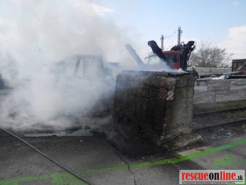 Požiar nakladača a nákladného auta v areáli firmy v Trnave