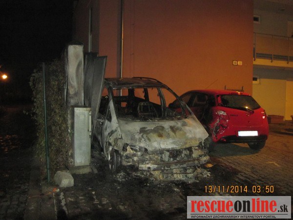 MVSR |MM| Vo štvrtok 13. novembra 2014 bol krátko pred pol druhou hodinou nadránom ohlásený požiar osobného motorového vozidla Volkswagen Shara na Muškátovej ulici v Zálesí v okrese Senec. Požiarom boli poškodené aj motorové vozidlo Mazda 2 a elektrická rozvodná skriňa.