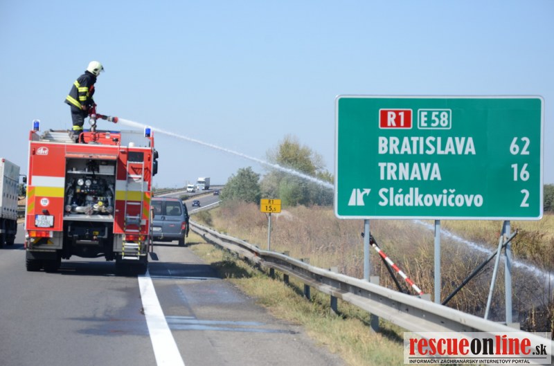 Sereď | R1 | Dnes krátko pred 13. hodinou vznikol pri 15.5 km rýchlostnej cesty R1 v smere z Nitry na Trnavu požiar trávnatého porastu. Na miesto udalosti bola vyslaná jednotka HaZZ zo Serede, ktorá požiar do niekoľkých minút zlikvidovala.
