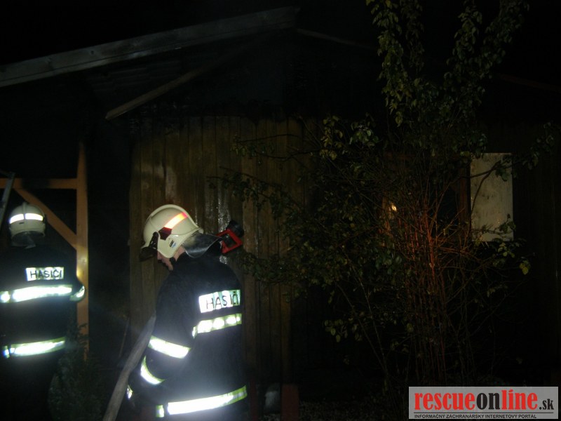 KR HaZZ Trnava | IT | V sobotu 12. novembra 2011 o 19,51 hod bol ohlásený požiar záhradnej chatky v chatovej osade Čepeň pri meste Sereď, okres Galanta. K udalosti boli vyslaní štyria príslušníci HaZZ s technikou T148 CAS 32 a MB Vario z hasičskej stanice v Seredi. Pri príjazde na miesto udalosti sa skoro celá drevená chatka nachádzala v plameňoch. Likvidácia požiaru bola vykonaná jedným C a jedným vysokotlakovými prúdom vody za súčasného rozoberania konštrukcie chatky. Z chatky bola vynesená propán butánová fľaša. Následkom požiaru vznikla majiteľovi záhradnej chatky priama materiálna škoda predbežne vyčíslená na 4 000,- €. Príčinou vzniku požiaru bolo úmyselné zapálenie.