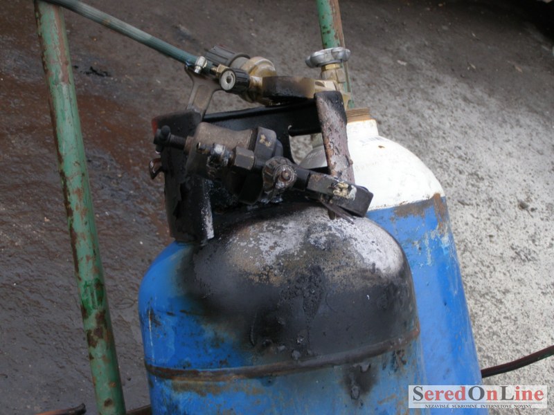 KR HaZZ Trnava | Na ohlasovňu požiarov hasičskej stanice v Hlohovci bol vo štvrtok 3. marca 2011 nahlásený požiar propán butánovej fľaše v objekte Kovošrotu v Leopoldove. Na miesto udalosti boli vyslaní traja príslušníci s technikou AHZS MB Atego. Po príjazde na miesto bolo prieskumom zistené, že horí propán bután unikajúci z poškodeného ventilu fľaše. Zamestnanci firmy boli už pred príchodom jednotky HaZZ evakuovaní. Na lokalizáciu a následnú likvidáciu požiaru bol použitý vysokotlaký prúd. Po uhasení požiaru bola fľaša ochladzovaná a kontrolovaná termokamerou. Po je dostatočnom ochladení bol ventil uzavretý aby neprichádzalo k ďalšiemu úniku plynu následnému požiaru. Po ukončení zásahu sa jednotka vrátila na základňu. Škoda spôsobená požiarom bola vyčíslená na 150.- € a príčinou vzniku požiaru bola technická porucha ventilu tlakovej fľaše.