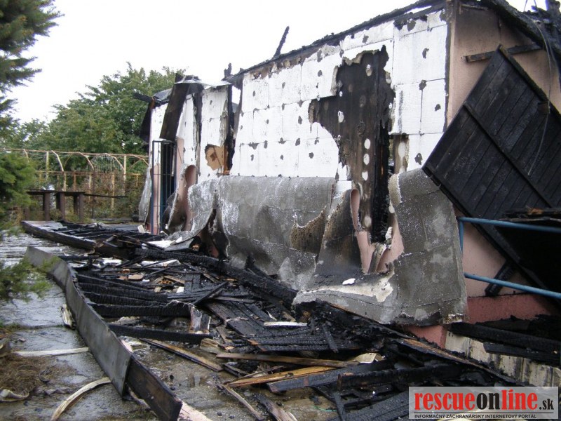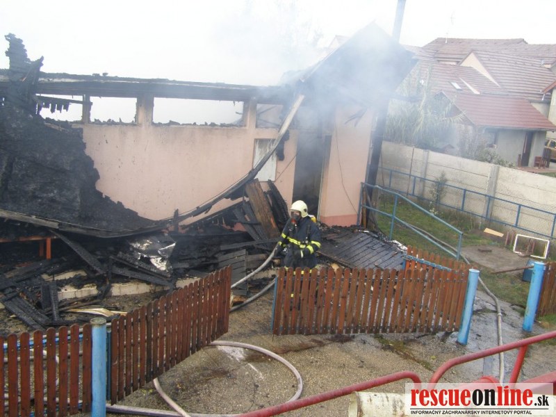 KR HaZZ Trnava |MM| Vo štvrtok 20. októbra 2011 o 12:17 hod. bol prostredníctvom linky tiesňového volania 112 Koordinačného strediska integrovaného záchranného systému v Trnave nahlásený požiar skladových priestorov – bývalého obchodu v obci Pusté Úľany (okr. Galanta) s jednou zranenou osobou. Na miesto udalosti boli vyslaní piati príslušníci z hasičskej stanice v Galante s technikou MB ATEGO a CAS 32 T815. Po príchode na miesto udalosti bolo prieskumom zistené, že sa jedná o požiar bývalého obchodu o rozlohe cca. 10 x 10 metrov, v súčasnosti využívaného ako skladové priestory. Na mieste sa nachádzala jedna zranená osoba s popáleninami tváre a krku, ktorej príslušníci HaZZ poskytli predlekársku pomoc a po príchode rýchlej zdravotnej pomoci bola odovzdaná do starostlivosti zdravotníkov. Na lokalizáciu a likvidáciu požiaru bol nasadený vysokotlakový prúd a jeden „C“ prúd. Požiar sa rýchlo šíril zo zadnej časti budovy, nakoľko sa v tejto časti nachádzali staré čerpacie zariadenia na pohonné hmoty, ktoré nájomca v budove rozoberal. Veliteľ zásahu rozhodol o povolaní ďalšej techniky z HS Sereď, HS Galanta a HS Senec, zároveň bol nasadený ďalší „C“ prúd. Hasenie vodou sa ukázalo ako neúčinné, keďže v priestoroch sa nachádzal benzín s výparmi z rozoberaných zariadení na čerpanie PHM, z tohto dôvodu bola nasadená ťažká pena. Počas cesty k udalosti prišlo k poruche na zásahovom vozidle CAS 32 T148 z hasičskej stanice v Seredi, z tohto dôvodu bola na miesto udalosti povolaná výšková technika Iveco Magirus Multistar z hasičskej stanice v Galante. Po príchode techniky z HS Galanta a Senec boli nasadené ďalšie 2 „C“ prúdy a bola zriadená kyvadlová doprava vody prostredníctvom vozidiel CAS 30 IVECO Trakker a CAS 32 T815 z hydrantu, vzdialeného cca. 1 km od miesta požiaru. Požiar sa postupne rozšíril na celú budovu a jej strechu. Keďže vplyvom požiaru hrozilo zrútenie strechy budovy, hasenie prebiehalo z bezpečnostných dôvodov zo všetkých strán cez dvere a okná. Tieto obavy sa potvrdili a celá strecha sa zrútila do vnútra objektu. Po jej zrútení boli hasiace práce vykonávané aj vo vnútri budovy, odkiaľ príslušníci vyniesli jednu acetylénovú fľašu, ktorá bola následne uložená na voľné priestranstvo a bola ochladzovaná. Počas celého vykonávania zásahu príslušníci HaZZ používali autonómne dýchacie prístroje na ochranu horných dýchacích ciest. Nakoľko výšková technika už nebola na zdolávanie požiaru potrebná, vozidlo Iveco Magirus Multistar bolo poslaná späť na základňu. Časti strechy, ktoré zostali na obvodových stenách, boli pomocou trhacích hákov strhnuté dolu a dohasené. Následne boli prekontrolované obvodové steny, keďže boli zhotovené z drevotriesky a na viacerých miestach boli prehorené, tlejúce a horiace miesta boli zahasené. Postupne boli dohášané všetky vnútorné aj vonkajšie ohniská, hasičská jednotka zo Senca bola poslaná späť na základňu. Príslušníci HaZZ vykonali obhliadku miesta požiaru, boli dohasené posledné ohniská a o 16:20 hod. bola vyhlásená likvidácia požiaru, na ktorého zdolávaní sa podieľalo celkovo 18 príslušníkov HaZZ. Po ukončení hasiacich prác bolo vykonané zdokumentovanie udalosti a miesto požiaru bolo odovzdané prítomnému majiteľovi objektu, ktorý bol poučený o ďalších protipožiarnych opatreniach. Na miesto udalosti sa medzitým dostavili členovia Obecného hasičského zboru zo susednej obce Abrahám, ktorých úlohou bolo zabezpečiť dohľad nad miestom udalosti po dobu troch hodín. Hasičská jednotka z Galanty sa o 17:36 hod. vrátila na základňu. Následkom požiaru vznikla majiteľovi skladovacích priestorov priama materiálna škoda predbežne vyčíslená na 3.319,- €. Pravdepodobnou príčinou vzniku požiaru bola neodborná manipulácia nájomcu objektu pri rozbrusovaní kovových materiálov.