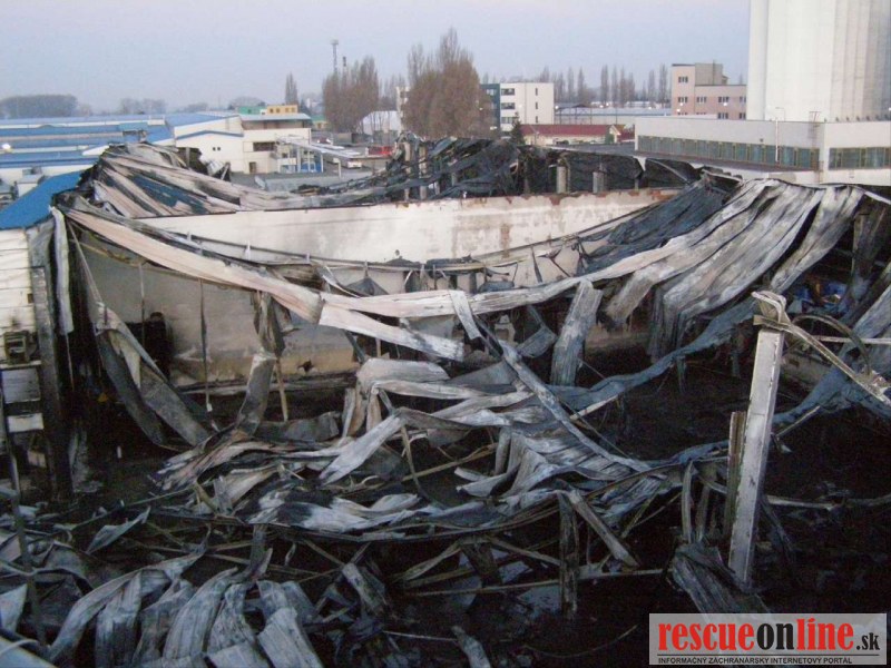 KR HaZZ Trnava |MM| Dňa 08. marca 2015 pred 02.00 hod. bol ohlásený požiar skladu vo výrobnom komplexe spoločnosti Jasplastik-SK, s.r.o. v Galante (Matúškovská cesta). Požiarom bola zasiahnutá približne 1/3 plochy skladu, v ktorom bol uskladnený polystyrén. Rozsiahli požiar si vyžiadal nasadenie značného množstva síl a prostriedkov. Na mieste udalosti zasahovalo 45 hasičov a 25 kusov hasičskej techniky z hasičských staníc Galanta, Sereď, Trnava, Piešťany, Nitra a dvoch DHZO Horné Saliby a Gáň. V dôsledku požiaru bolo za asistencie polície evakuovaných 102 ľudí, ktorí sa v čase požiaru nachádzali v priestoroch skladu a priľahlých prevádzkach. Požiar si nevyžiadal žiadne zranenia. Predbežná materiálna škoda bola vyčíslená na približne 2.500.000,- €. Príčina vzniku požiaru je v štádiu zisťovania. Požiar bol zlikvidovaný krátko po 09.00 hod.