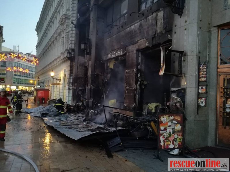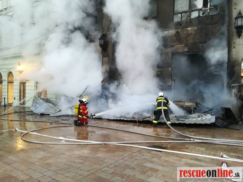 Prezídium HaZZ |MM| Bratislavskí hasiči včera zasahovali pri požiari na Hlavnom námestí v Bratislave, ktorý vypukol po pol štvrtej popoludní. Požiar vznikol po výbuchu propán-butánových fliaš a rozšíril sa na vedľajší murovaný objekt. Hlavné námestie a budovy v bezprostrednej blízkosti sú evakuované, hasiči vykonali hasebné práce a prieskum objektov. Pri udalosti zasahovalp 25 príslušníkov HaZZ so 7 kusmi hasičskej techniky, na mieste zasahovali aj dobrovoľní hasiči z DHZO Ružinov. Pri udalosti došlo k zraneniu jednej osoby, ktorá utrpela popáleniny na tvári a rukách a bola v opatere RZP. Majiteľ objektu predbežne odhadol škodu spôsobenú požiarom na viac ako 200 tisíc eur. Na mieste bola prítomná aj expertízna skupina na zisťovanie príčin vzniku požiarov z PTEÚ MV SR.