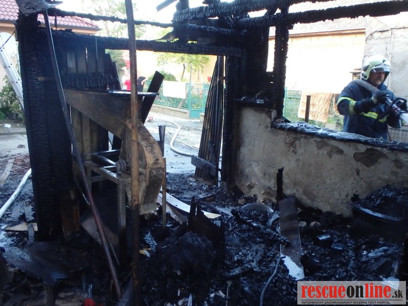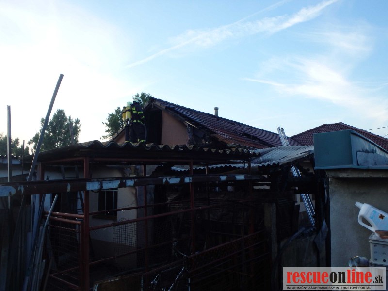 KR HaZZ Trnava |MM| Dňa 01. júna 2015 krátko po 19.00 hod. bol ohlásený požiar strechy rodinného domu a šopy v jeho tesnej blízkosti v obci Kajal (okres Galanta). V čase príchodu hasičov na miesto udalosti bola šopa za domom celá v plameňoch a požiar sa ďalej šíril po drevenej konštrukcii strechy domu. Podľa informácií majiteľa objektu bolo podozrenie, že sa v budove nachádza osoba. Vzhľadom na stupeň rozhorenia požiaru nebolo možné do priestorov budovy okamžite vstúpiť. Likvidácia požiaru bola primárne zameraná na utlmenie požiaru v priestoroch, kde sa mala nachádzať osoba a jej následnú záchranu. Súbežne hasiči vykonávali likvidačné práce s cieľom zabrániť šíreniu požiaru po strešnej konštrukcii. Postupne bola odkrývaná strešná krytina a likvidovaný požiar drevených strešných trámov a skryté ohniská požiaru. Po utlmení požiaru v priestoroch šopy vykonali hasiči vyhľadanie osoby. V jej troskách našli pozostatky osoby. Privolaný lekár konštatoval exitus.