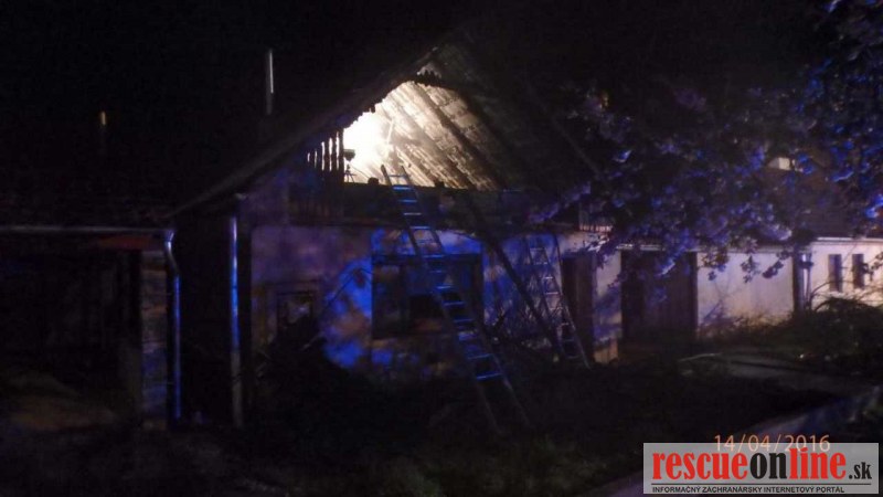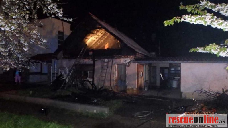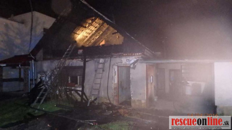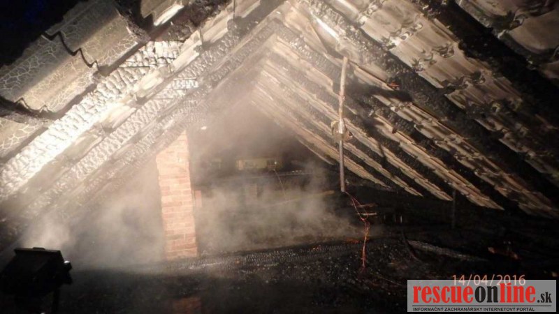 KR HaZZ Trnava |MM| Dnes (14. apríla.2016) krátko po polnoci bol ohlásený požiar strechy rodinného domu v obci Červeník. V čase príchodu hasičov na miesto udalosti bola celá strecha zachvátená plameňom. Jednalo sa o požiar drevenej konštrukcie strechy rozmerov 5 x 10 m s plechovou krytinou. Požiarom bola zasiahnutá aj drevená konštrukcia prístavby rozmerov 3 x 5 m. Na likvidáciu požiaru boli nasadené dva vysokotlaké prúdy za súčasného rozoberania konštrukcie strechy a časti prístavby rodinného domu. Pri požiari nebola zranená žiadna osoba. Na mieste udalosti zasahovalo 7 hasičov z Hlohovca a 3 kusy hasičskej techniky a 6 členov DHZO z Leopoldova s 1 technikou. Príčina vzniku požiaru je v štádiu zisťovania. Požiar spôsobil majiteľovi priamu materiálnu škodu predbežne vyčíslenú na 15 000,- Eur.