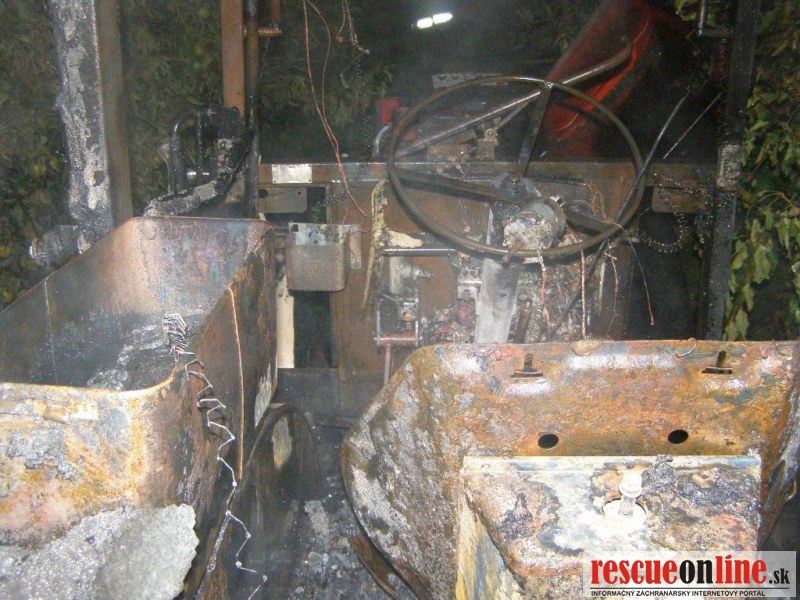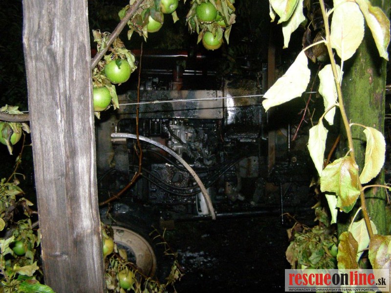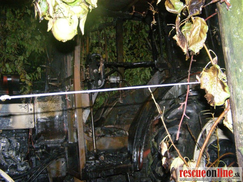 KR HaZZ Trnava |MM| Na operačné stredisko OR HaZZ v Dunajskej Strede bol v stredu 3. augusta 2011 o 21:52 hod. oznámený požiar traktora v ovocnom sade v obci Dunajská Lužná. Operačný dôstojník vyslal na miesto určenia jednotku HaZZ z hasičskej stanice Šamorín, štyroch príslušníkov s vozidlom MB Atego. Po príjazde na miesto udalosti sa zistilo, že traktor typu Zetor je už v značnom štádiu horenia. Horiaci traktor sa nachádzal medzi kordónmi jabloní, kde sa hasičské vozidlo s ohľadom na jeho šírku nedostalo. Na hasenie požiaru bolo potrebné vytvoriť vedenie zo šiestich „C“ hadíc. Nakoľko traktorista vypovedal, že za traktorom je pripojená cisterna s 1200 litrovou postrekovou látkou, ktorá je pravdepodobne poškodená, veliteľ zásahu nariadil pri hasení použitie dýchacích prístrojov. Po lokalizácii požiaru sa zistilo, že nádrž s postrekovou latkou nie je poškodená. Po zahasení plameňov bolo zistené, že je poškodené palivové vedenie na traktore a uniká motorová nafta. Príslušníkom HaZZ sa podarilo palivovú hadicu zapchať a utesniť a takto zamedziť únik väčšieho množstva nafty do pôdy. Zároveň bol odpojený akumulátor traktora. Traktor bol ochladený a následne odovzdaný na pozorovanie vedúcemu sadu. Škoda na požiarom poškodenom traktore bola vyčíslená na 3 320.- €. Príčina vzniku požiaru je v štádiu zisťovania. Po ukončení zásahu sa jednotka HaZZ o 23:10 hod. vrátila na základňu.