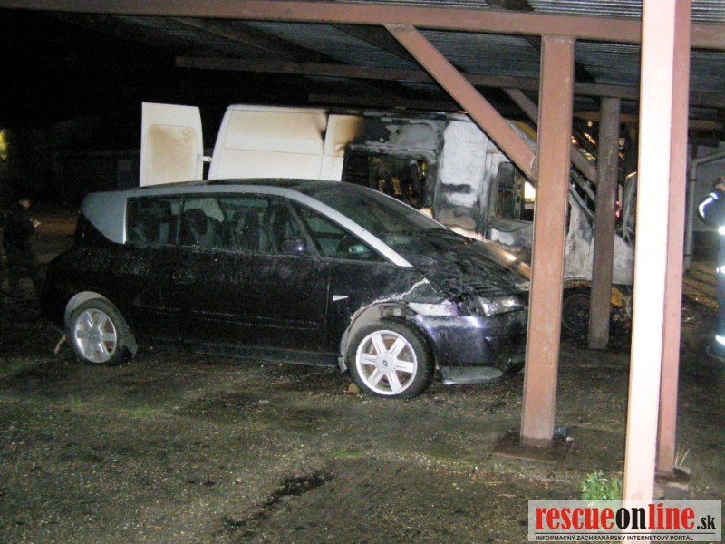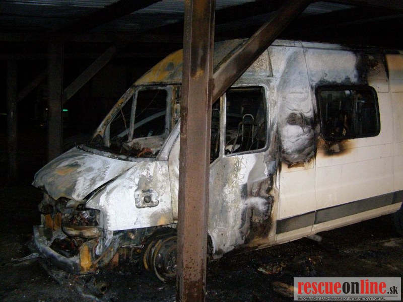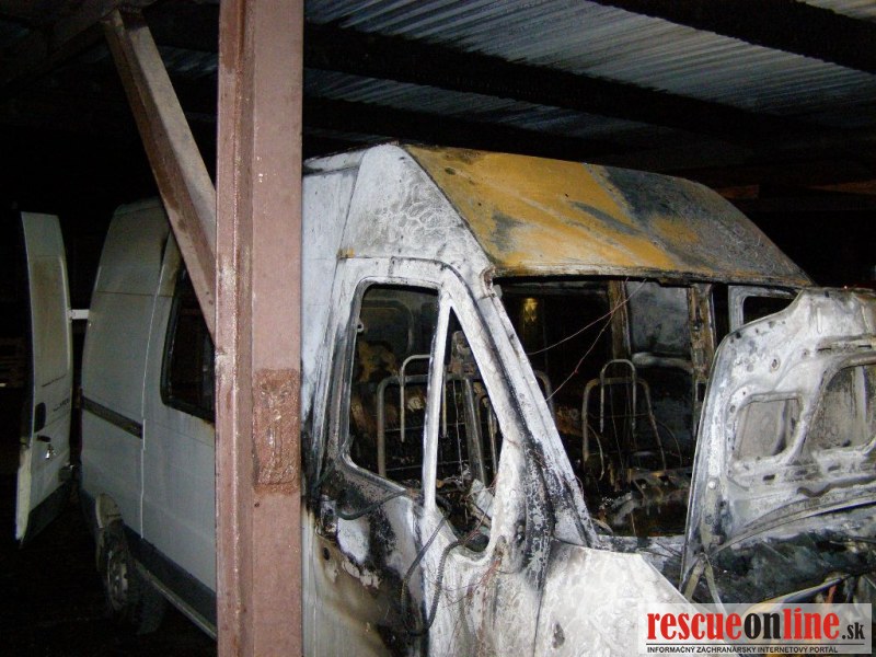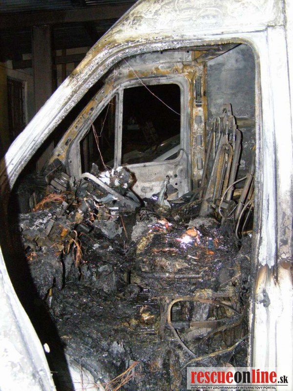 KR HaZZ Trnava |MM| Na ohlasovňu požiarov v Dunajskej Strede bol dňa 20. mája 2012 o 20:26 hod. prostredníctvom Koordinačného strediska integrovaného záchranného systému v Trnave nahlásený požiar motorových vozidiel v areáli súkromnej firmy v obci Dolný Bar (okres Dunajská Streda). Na miesto udalosti boli vyslaní traja príslušníci z hasičskej stanice Dunajská Streda s technikou Mercedes Benz Atego a dvaja príslušníci z hasičskej stanice Veľký Meder s technikou CAS 32 T-815. Pri príjazde na miesto udalosti bola vstupná brána firmy zabezpečená visiacim zámkom, ktorý príslušníci odstránili pomocou pákových nožníc. Prvotným prieskumom bolo zistené, že sa jedná o požiar dvoch dodávkových vozidiel značky Citroen Jumper a Volkswagen Crafter a jedného osobného motorového vozidla značky Renault Avantime, ktoré sa nachádzali pod prístreškom. Príslušníci HaZZ použili na lokalizáciu a likvidáciu požiaru jeden „C“ prúd a jeden vysokotlakový prúd, vzhľadom k veľkému zadymeniu priestoru zasahovali v autonómnych dýchacích prístrojoch. Zároveň bol prúdom vody ochladzovaný prístrešok a strecha budovy, nachádzajúca sa v blízkosti. Počas celého priebehu zásahu bolo miesto udalosti monitorované pomocou termovíznej kamery. Na miesto udalosti sa následne dostavil zisťovateľ príčin požiarov OR HaZZ v Dunajskej Strede a vyšetrovatelia PZ SR. Po likvidácii požiaru o 22:52 hod. bolo miesto odovzdané majiteľovi firmy a hasičské jednotky sa po zdokumentovaní udalosti a zbalení vecných prostriedkov vrátili na svoje základne. Následkom požiaru vznikla súkromnej firme priama materiálna škoda predbežne vyčíslená na 15.000,- €. Pravdepodobnou príčinou vzniku požiaru bolo úmyselné zapálenie.